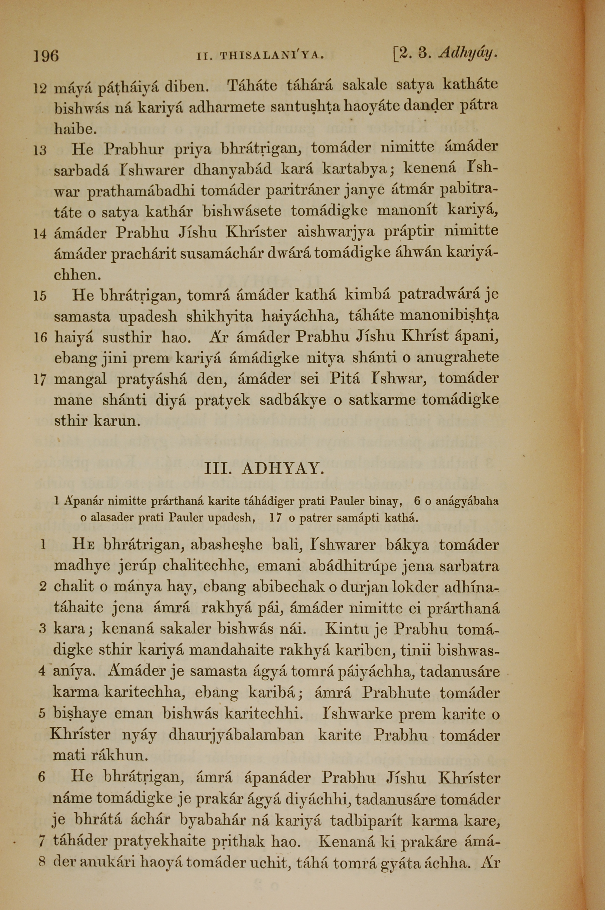 1839年孟加拉語新約全書 帖撒羅尼迦後書 2 章 12 節到 3 章 8 節