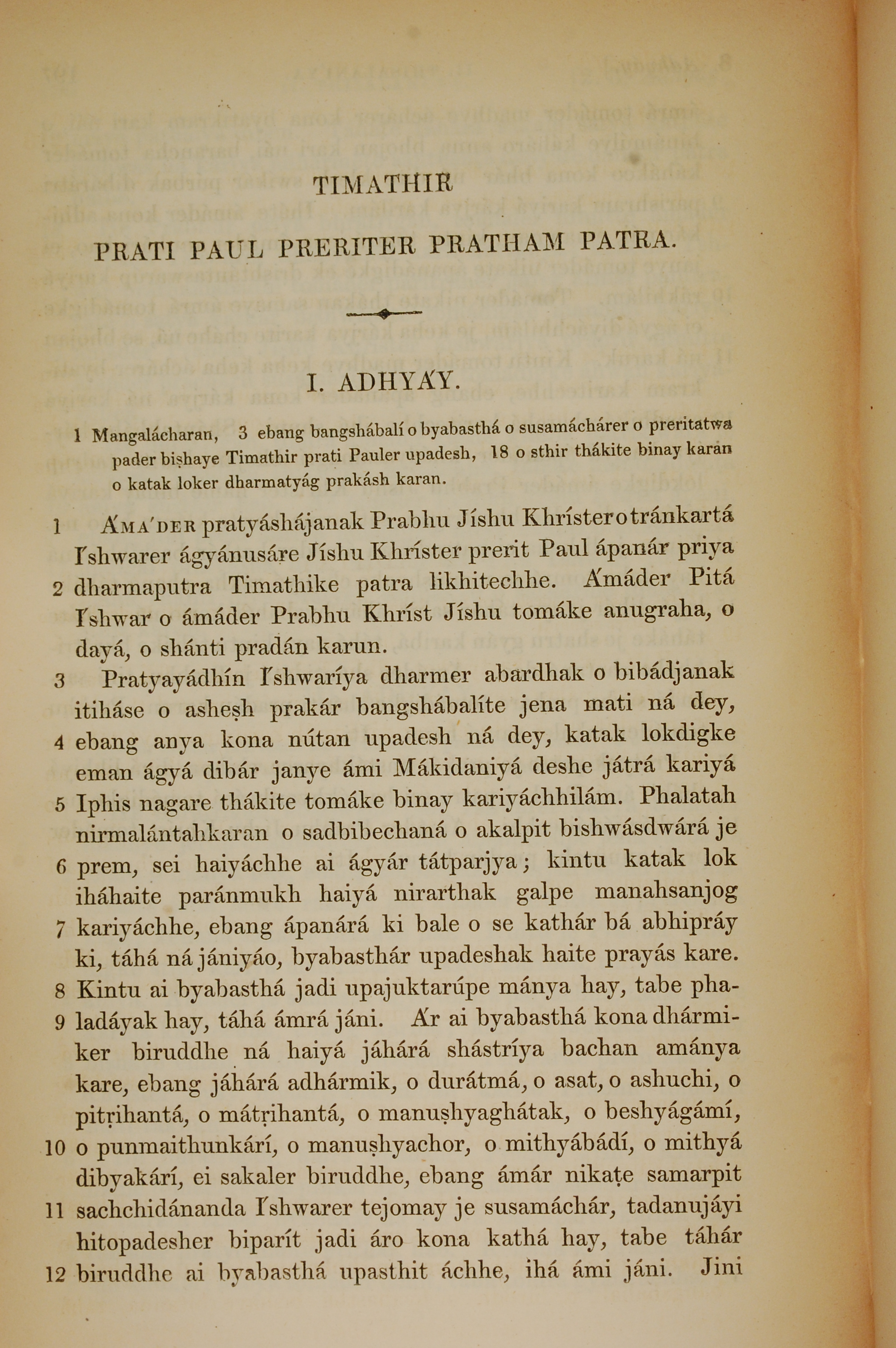 1839年孟加拉語新約全書 提摩太前書 1 章 1 節到 1 章 12 節