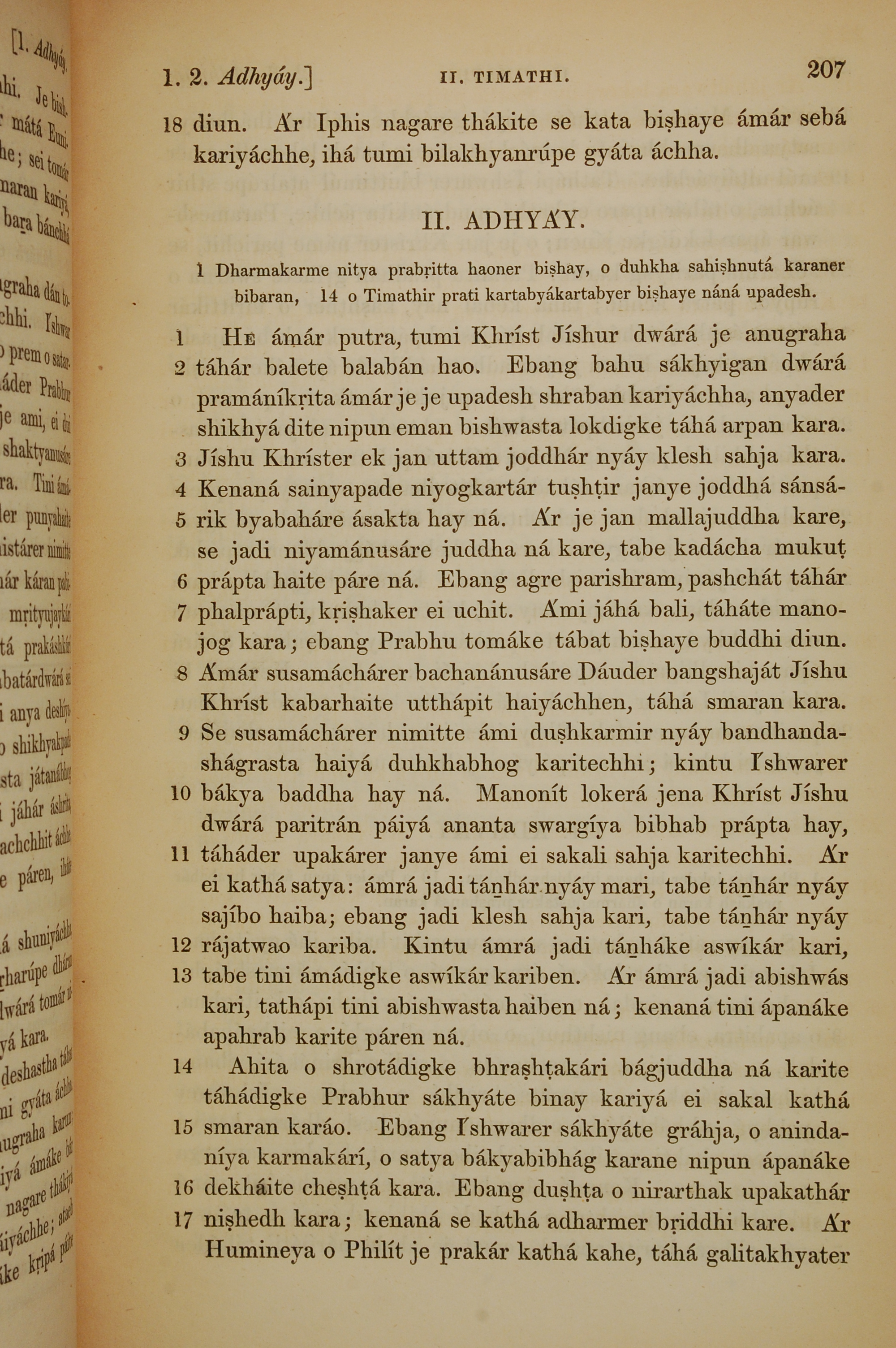 1839年孟加拉語新約全書 提摩太後書 1 章 18 節到 2 章 17 節