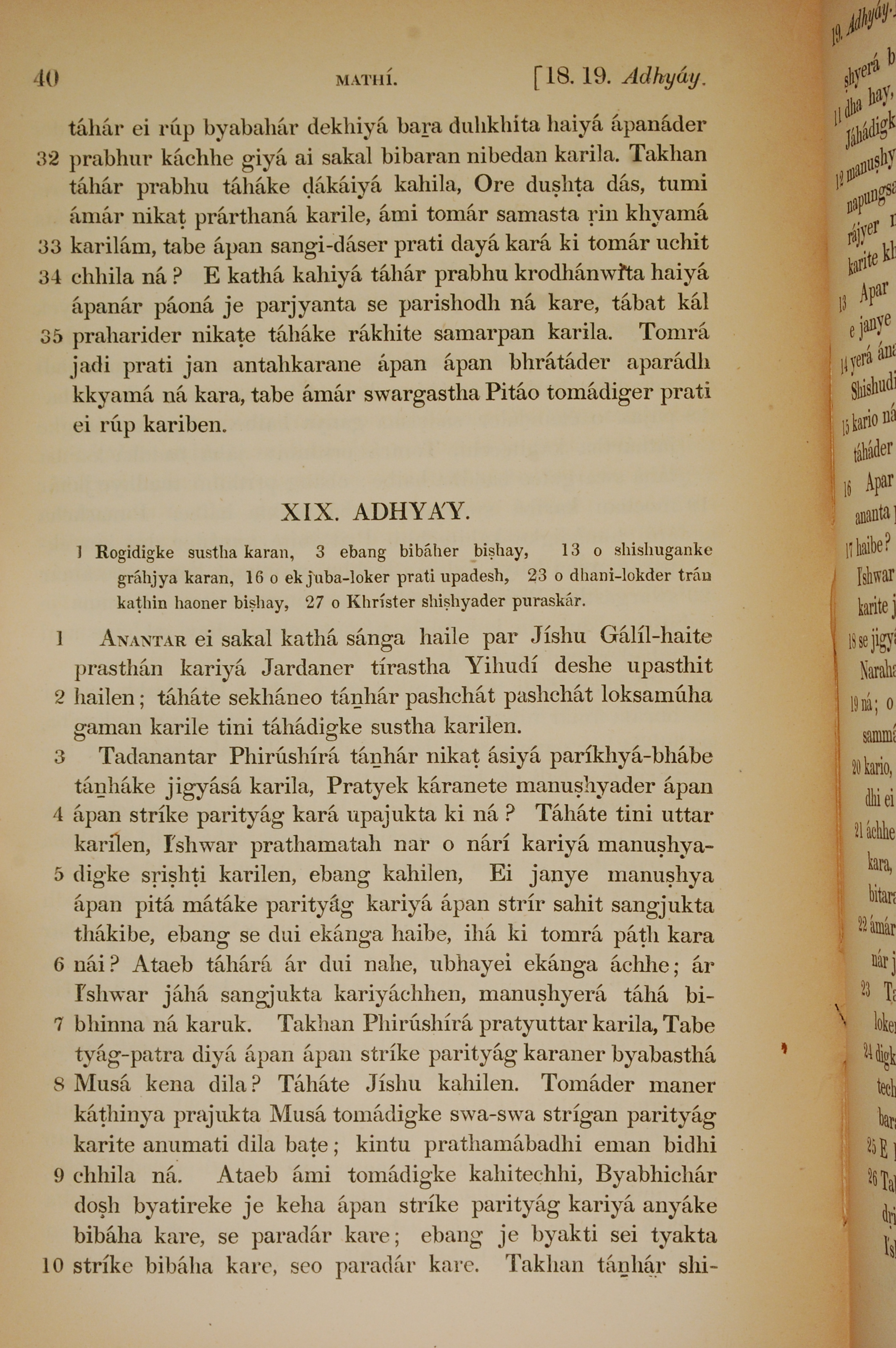 1839年孟加拉語新約全書 馬太福音 18 章 32 節到 19 章 10 節