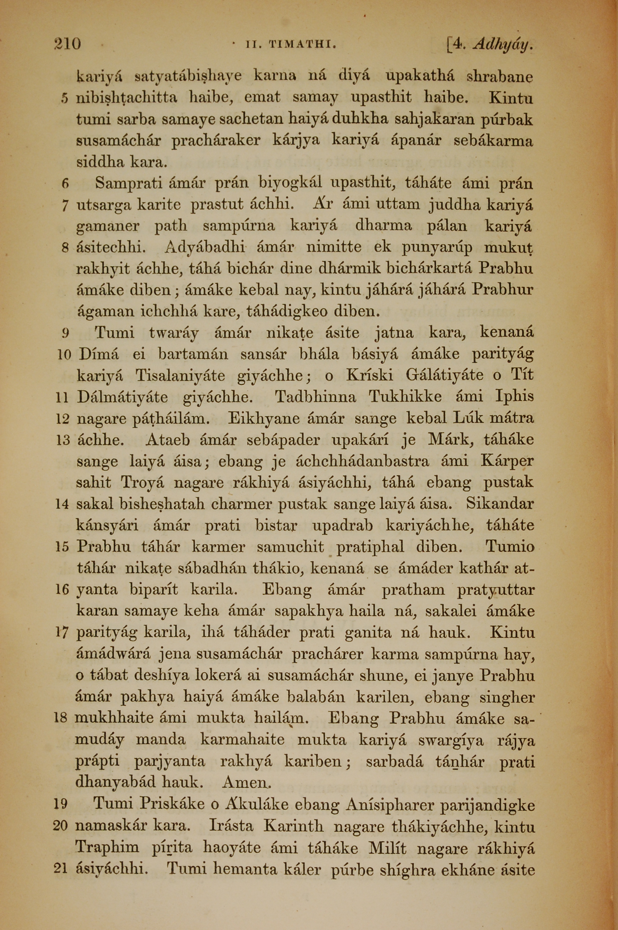 1839年孟加拉語新約全書 提摩太後書 4 章 5 節到 4 章 21 節