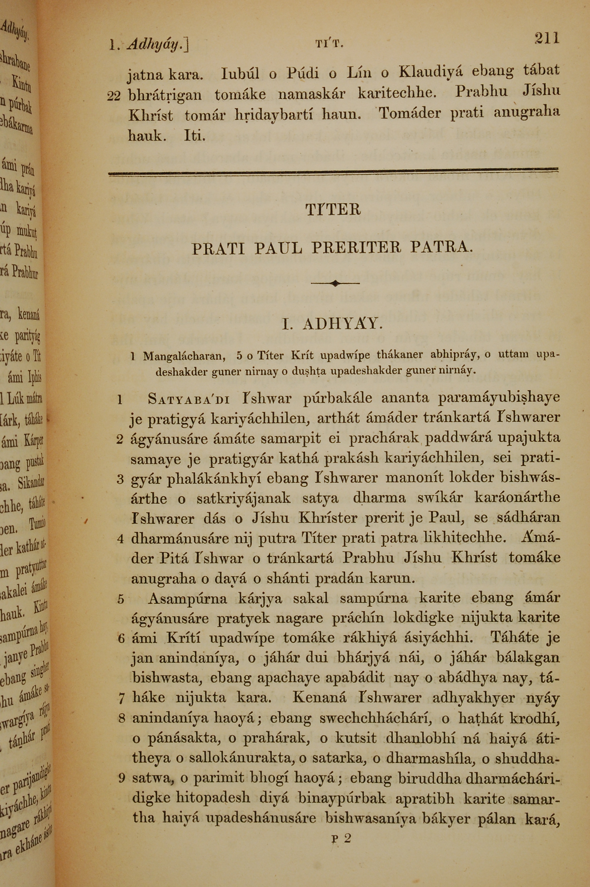 1839年孟加拉語新約全書 提多書 1 章 1 節到 1 章 9 節