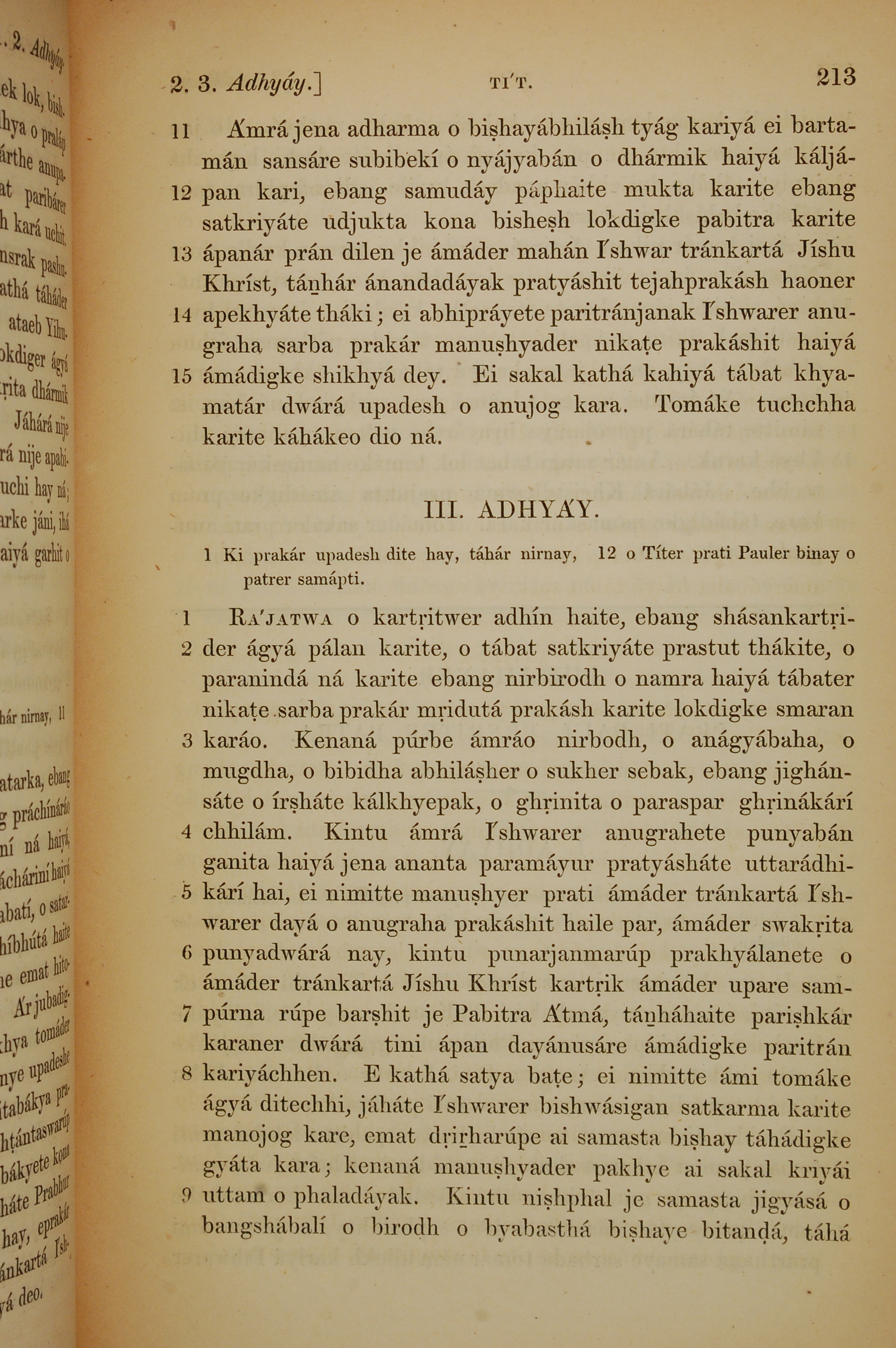 1839年孟加拉語新約全書 提多書 2 章 11 節到 3 章 9 節