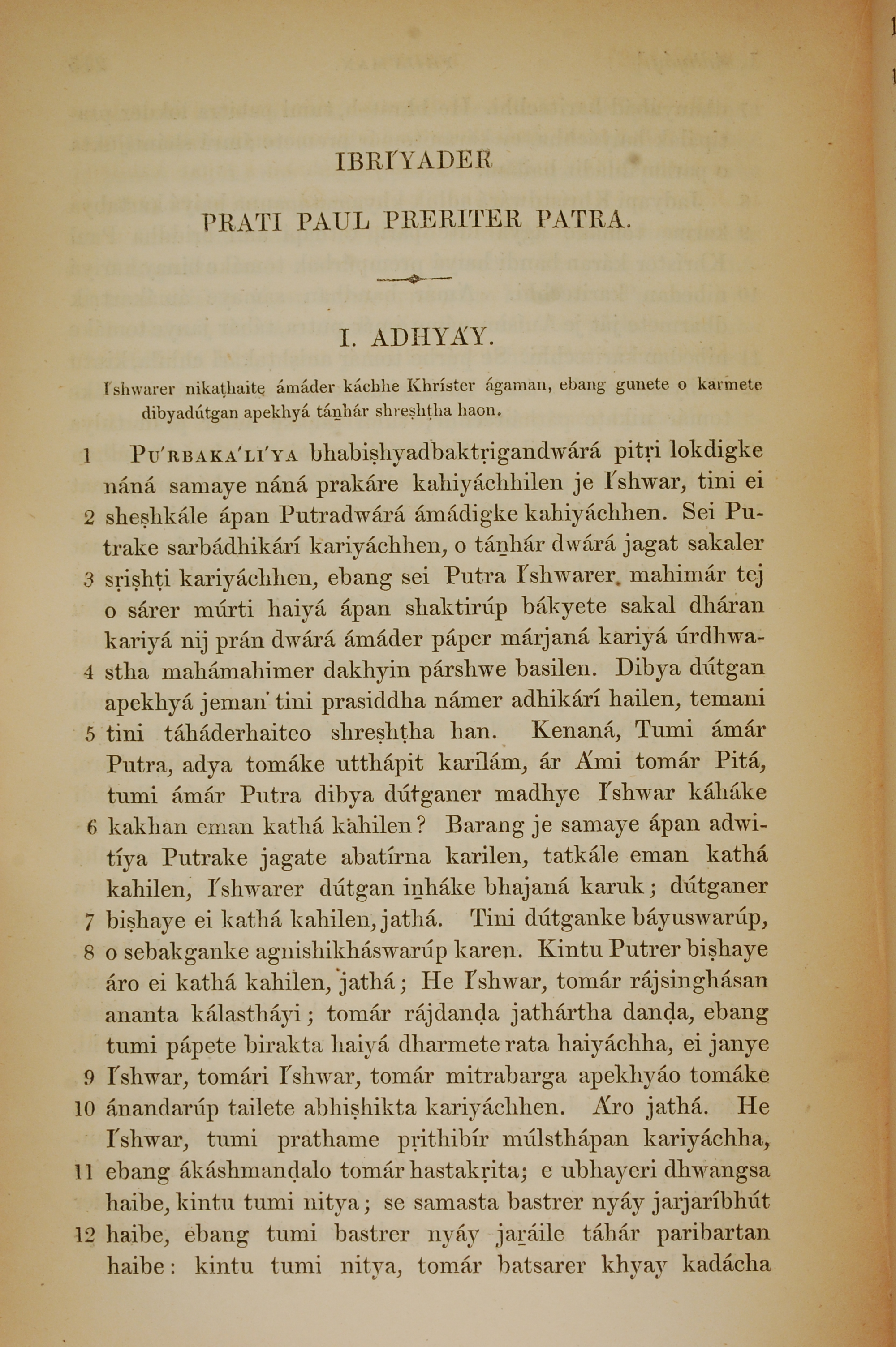 1839年孟加拉語新約全書 希伯來書 1 章 1 節到 1 章 12 節