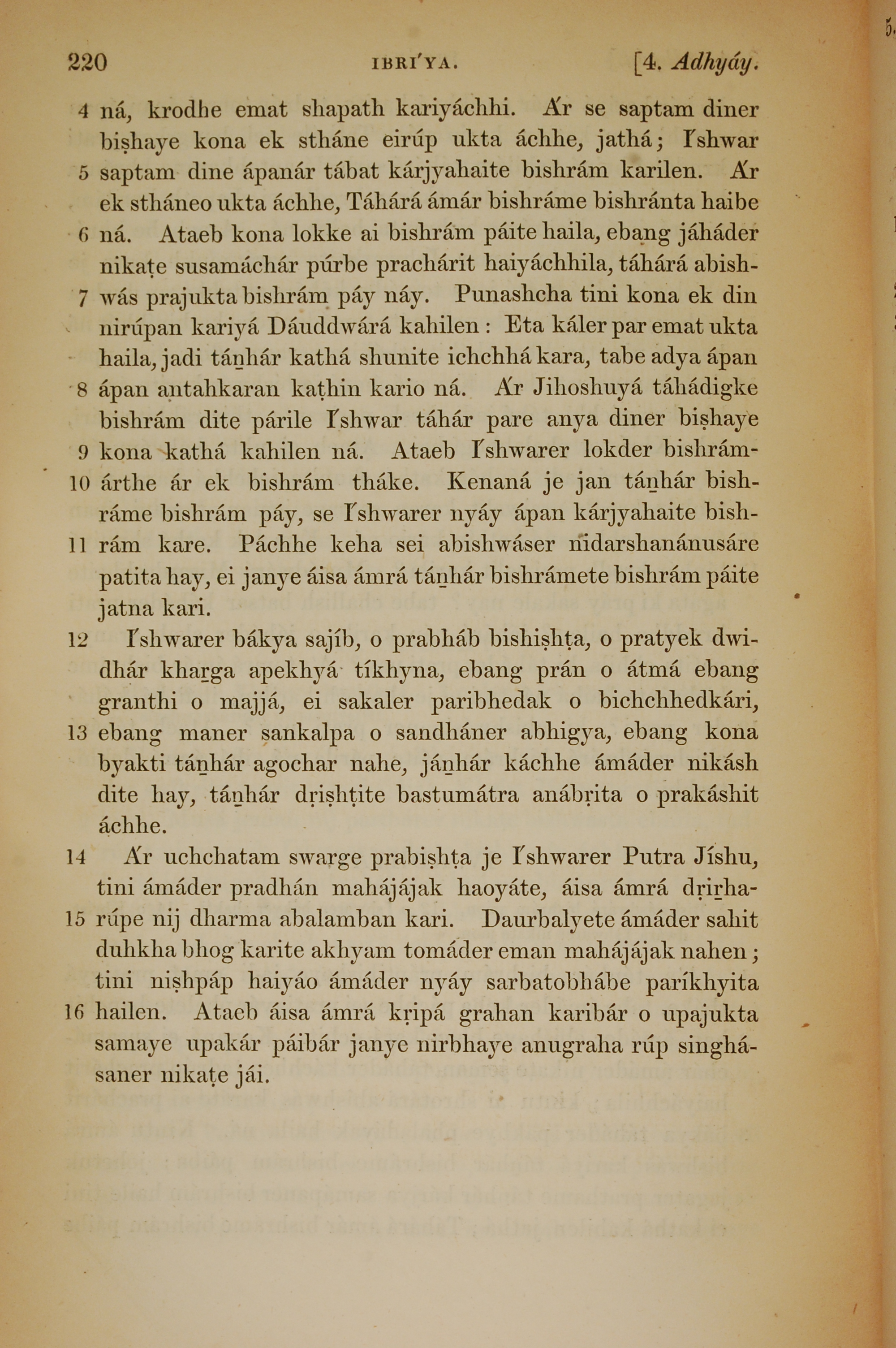 1839年孟加拉語新約全書 希伯來書 4 章 4 節到 4 章 16 節