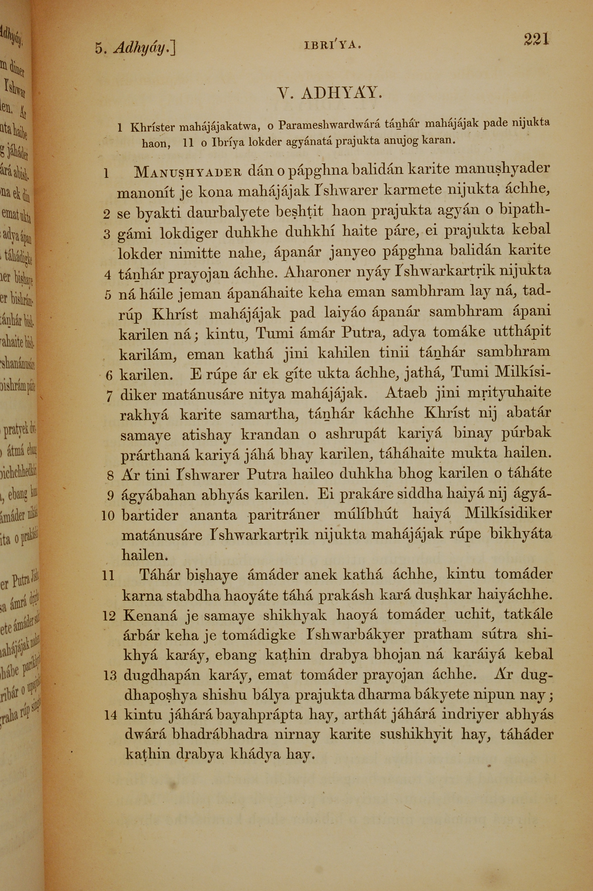 1839年孟加拉語新約全書 希伯來書 5 章 1 節到 5 章 14 節