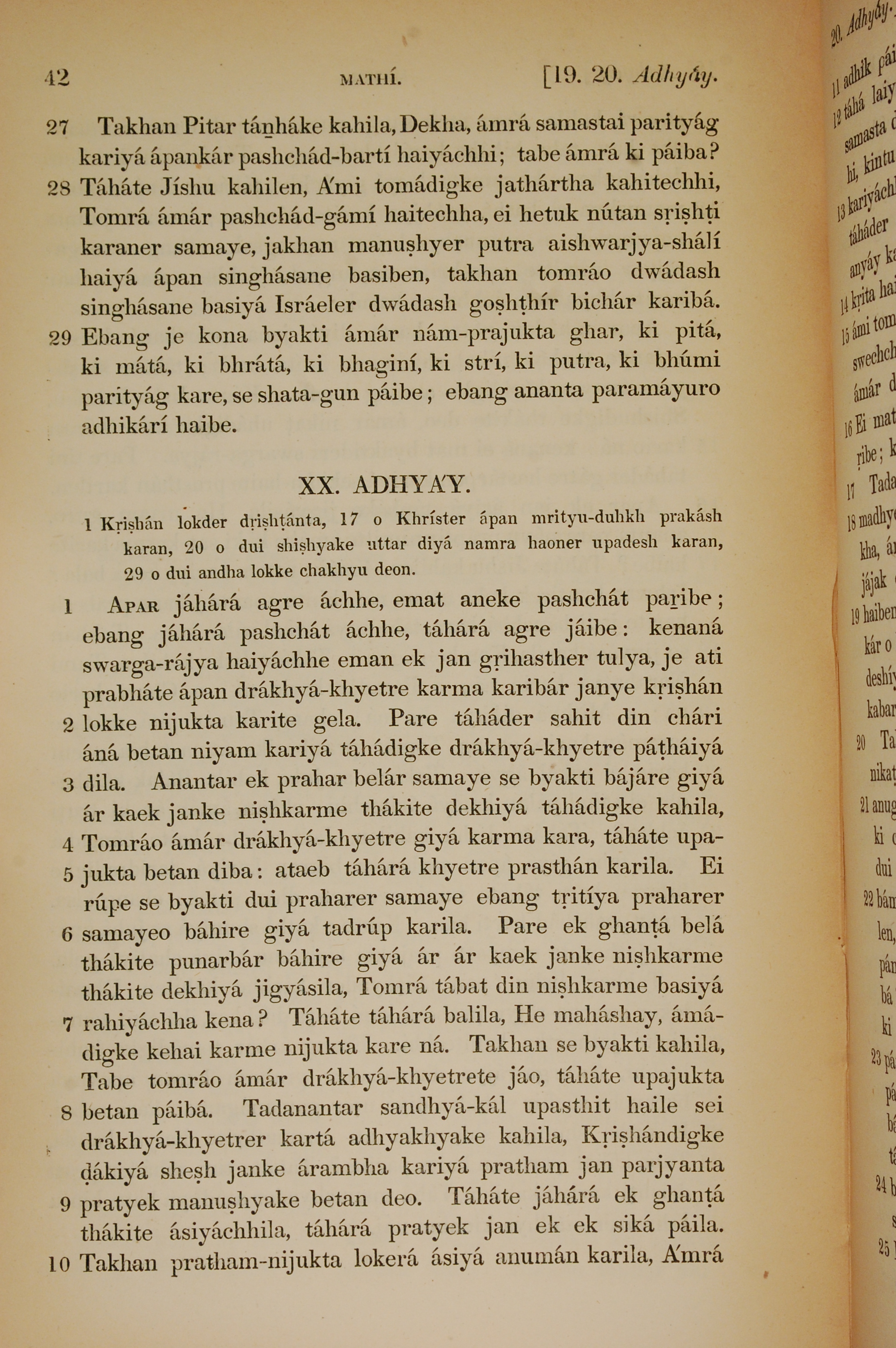 1839年孟加拉語新約全書 馬太福音 19 章 27 節到 20 章 10 節