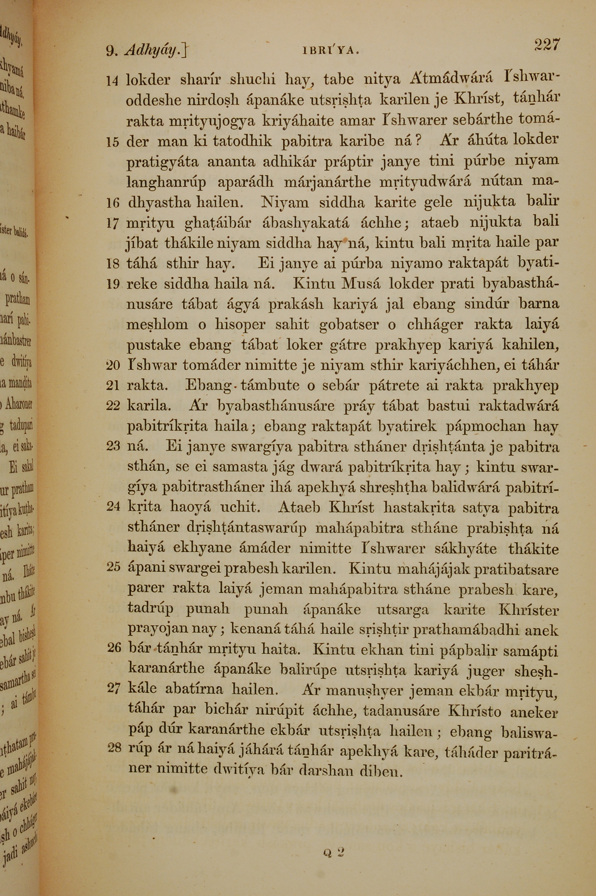 1839年孟加拉語新約全書 希伯來書 9 章 14 節到 9 章 28 節