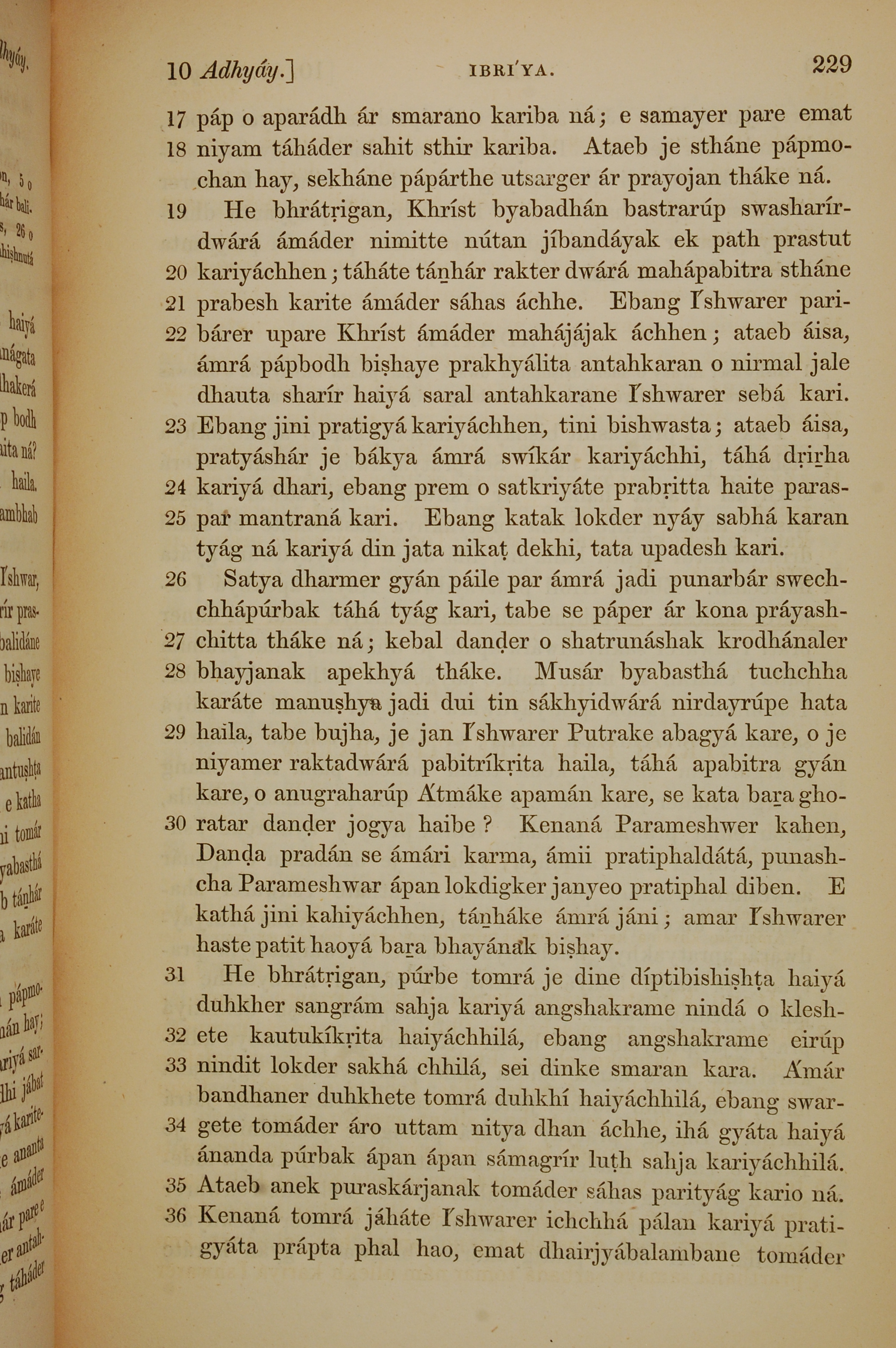 1839年孟加拉語新約全書 希伯來書 10 章 17 節到 10 章 36 節