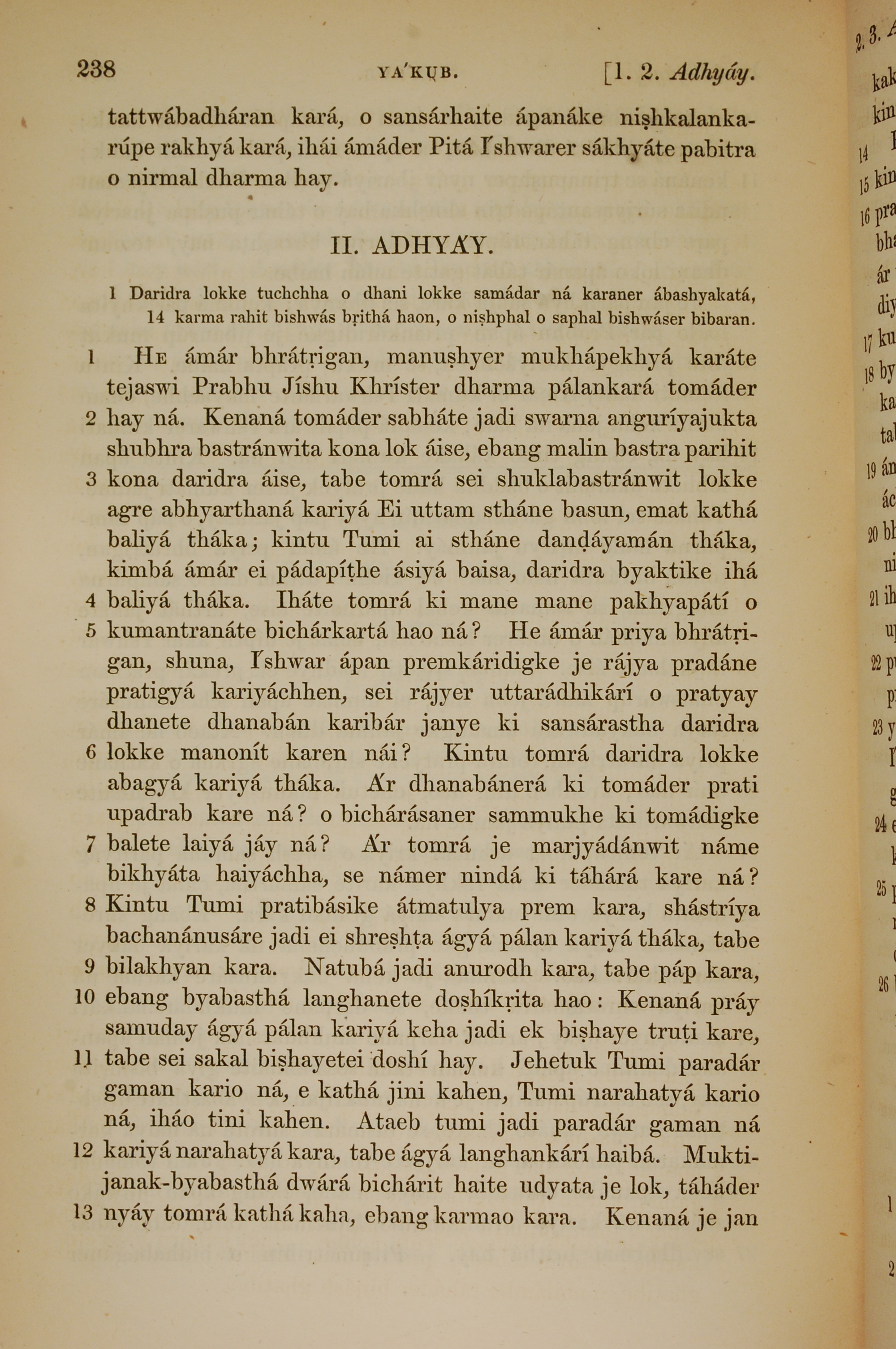1839年孟加拉語新約全書 雅各書 2 章 1 節到 2 章 13 節