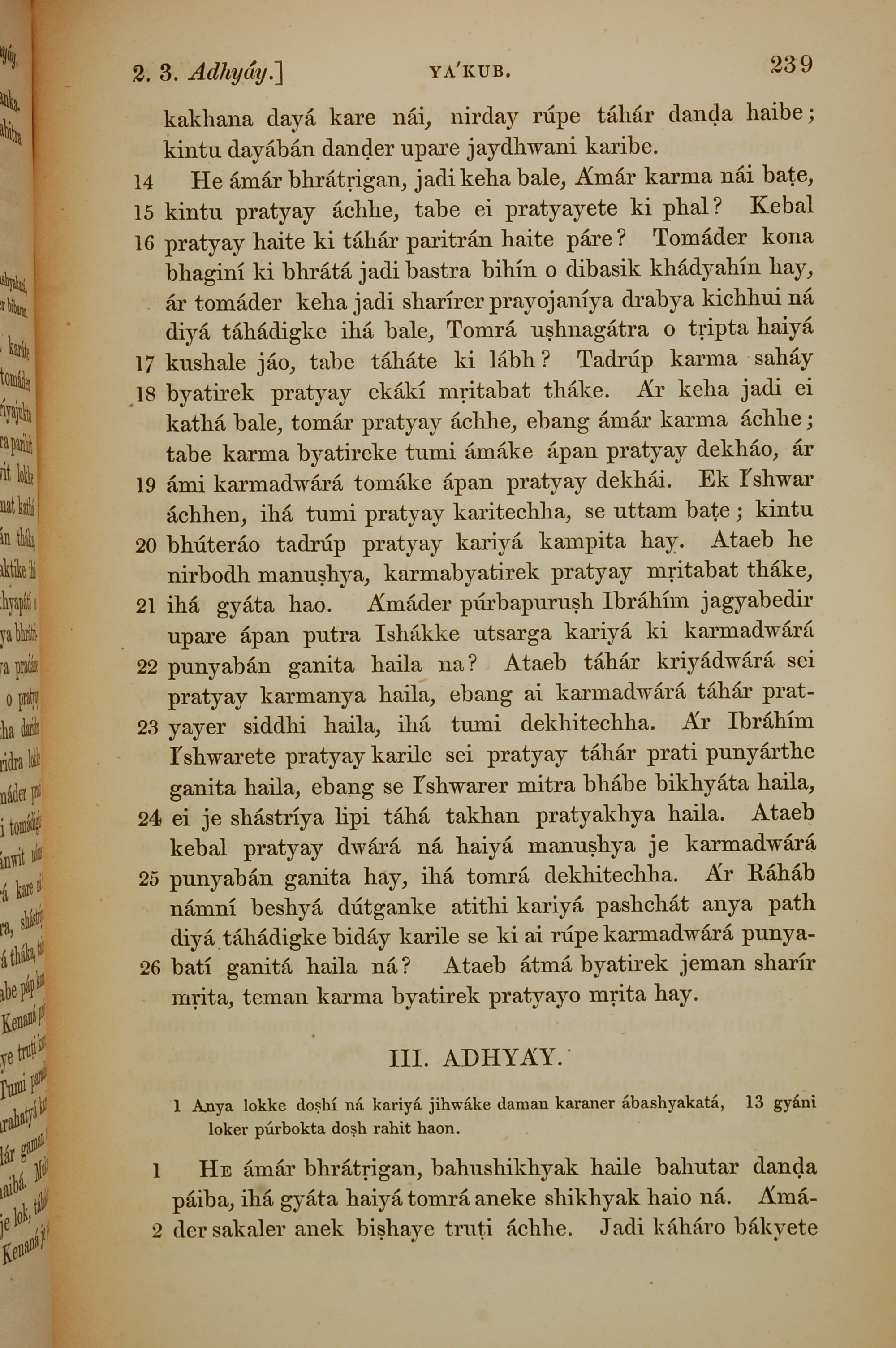 1839年孟加拉語新約全書 雅各書 2 章 14 節到 3 章 2 節