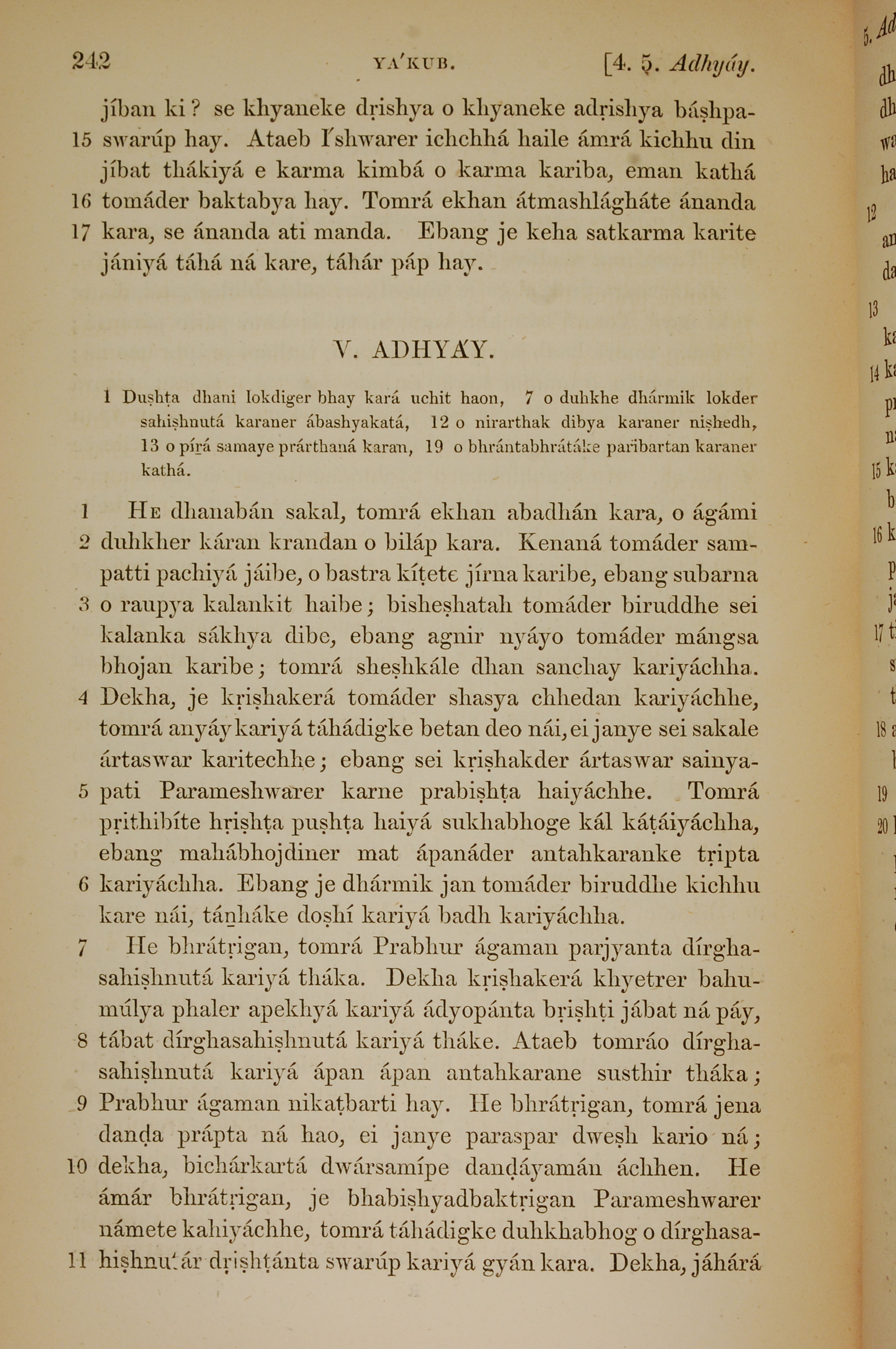 1839年孟加拉語新約全書 雅各書 4 章 15 節到 5 章 11 節