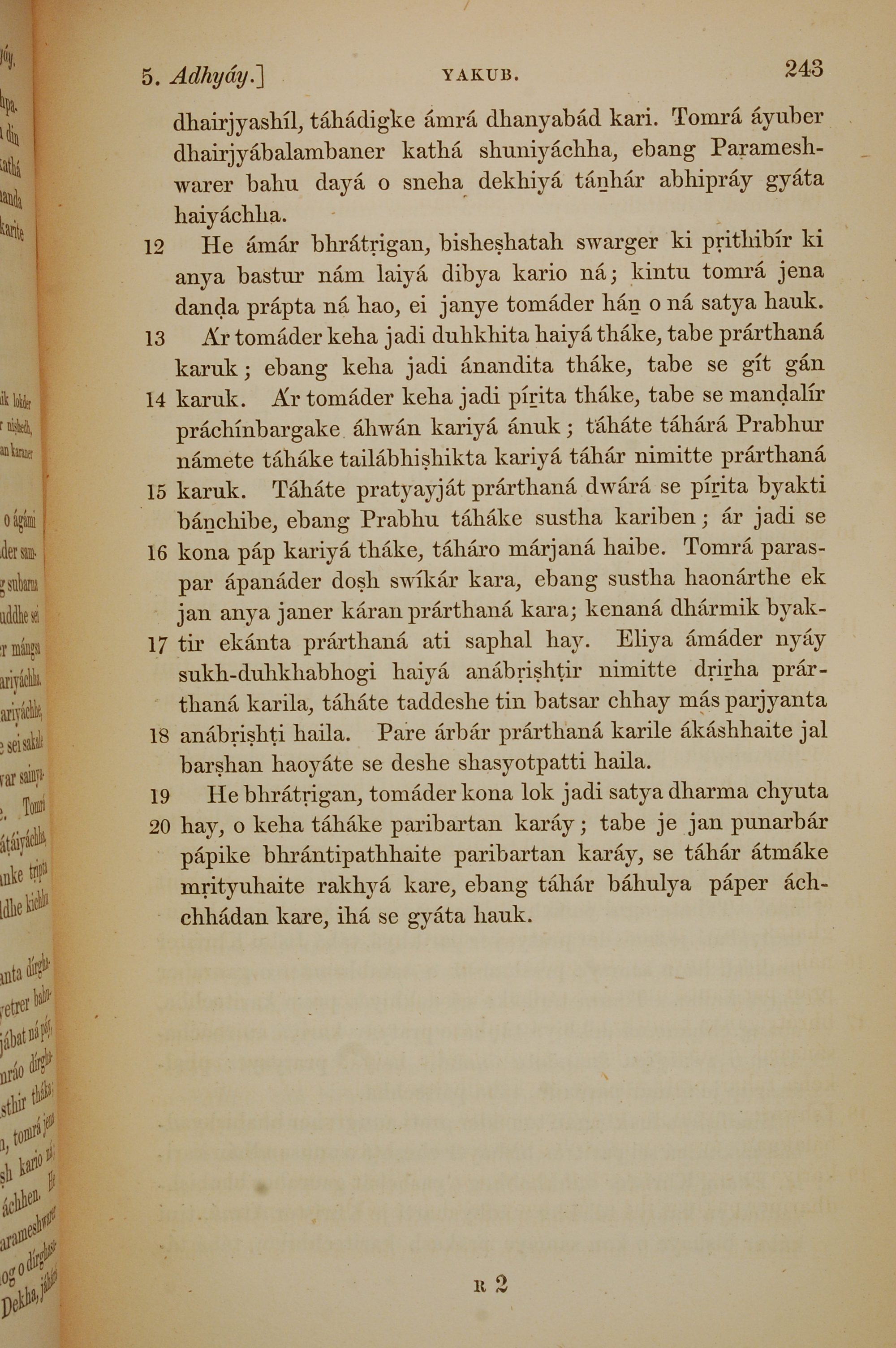 1839年孟加拉語新約全書 雅各書 5 章 12 節到 5 章 20 節