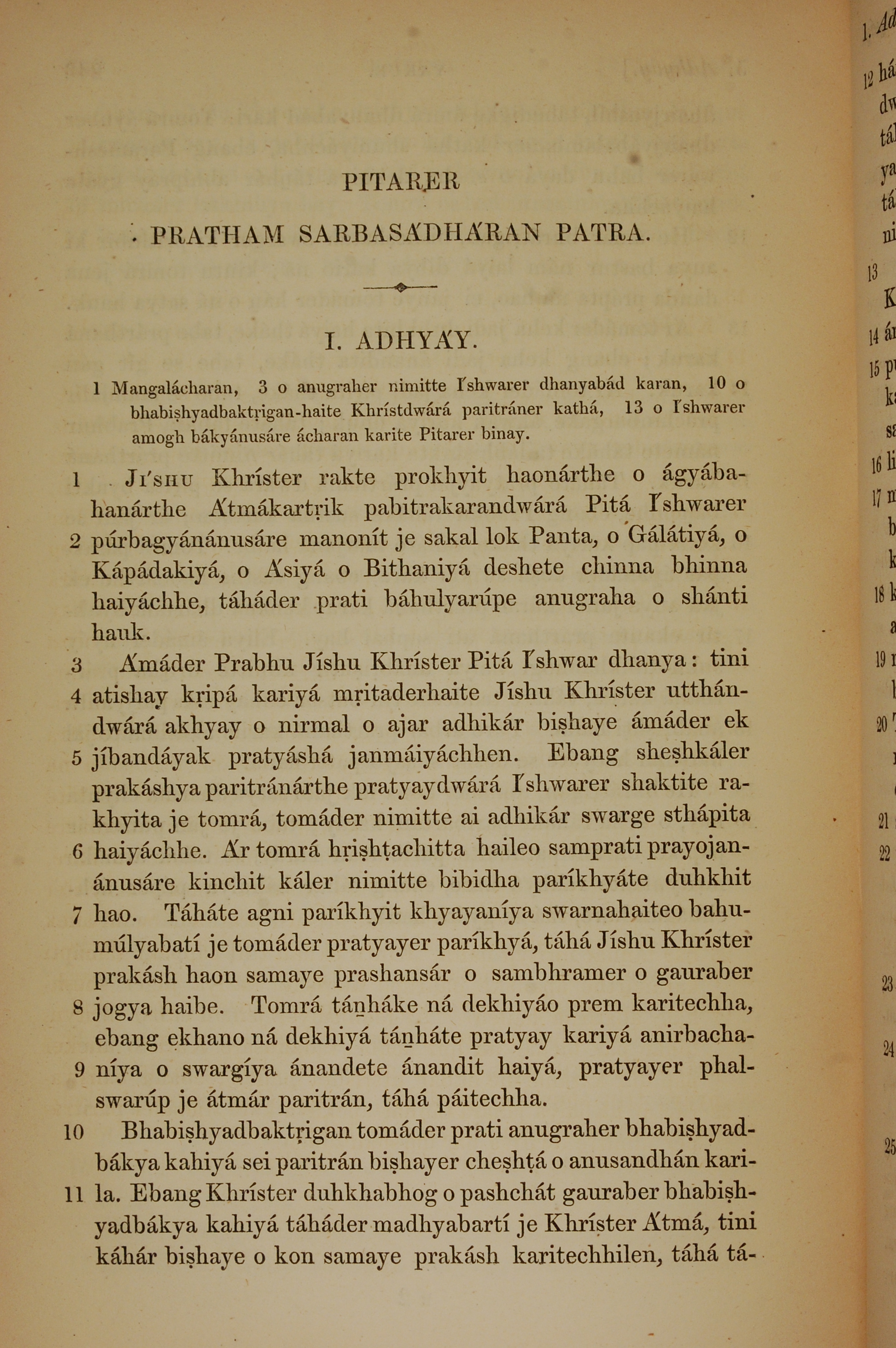 1839年孟加拉語新約全書 彼得前書 1 章 1 節到 1 章 11 節