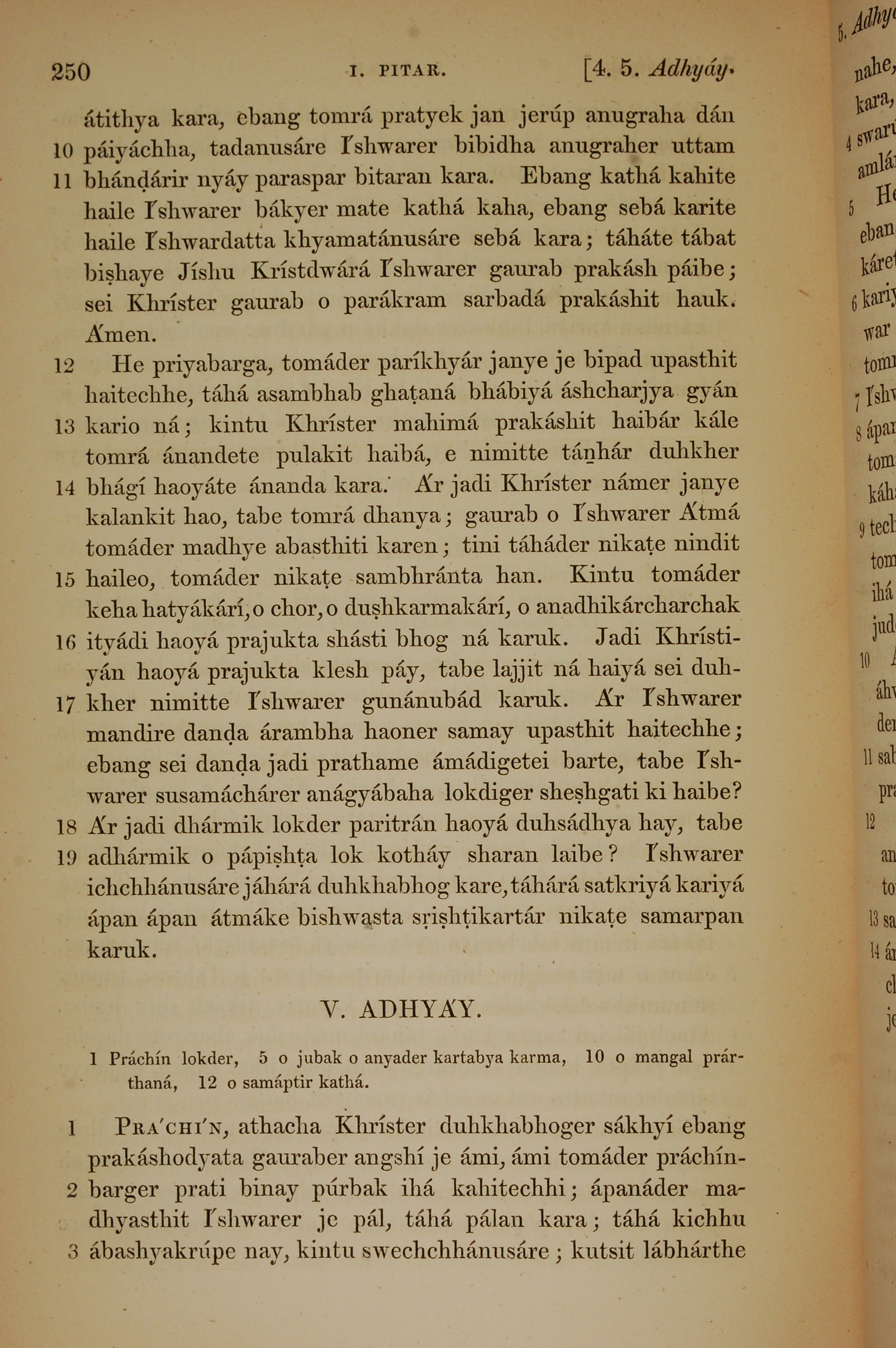 1839年孟加拉語新約全書 彼得前書 4 章 10 節到 5 章 3 節