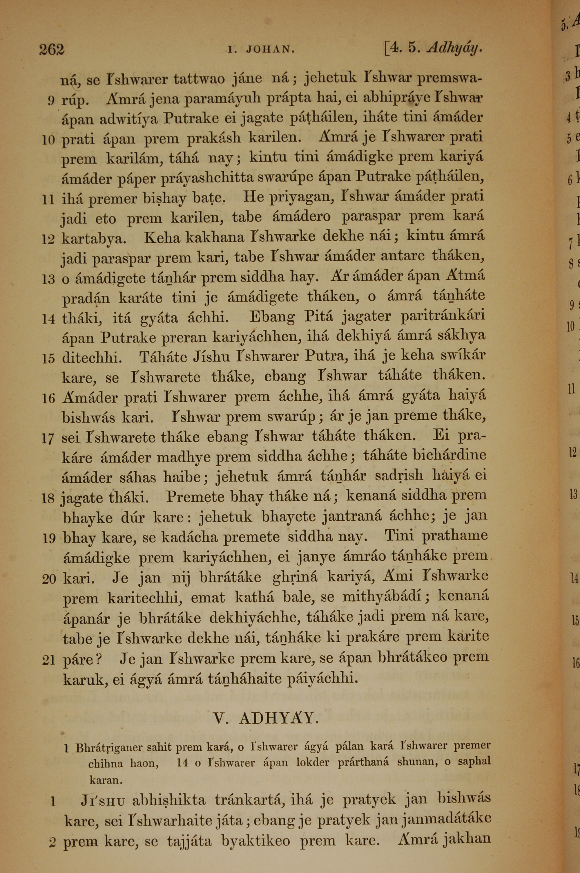 1839年孟加拉語新約全書 約翰一書 4 章 9 節到 5 章 2 節