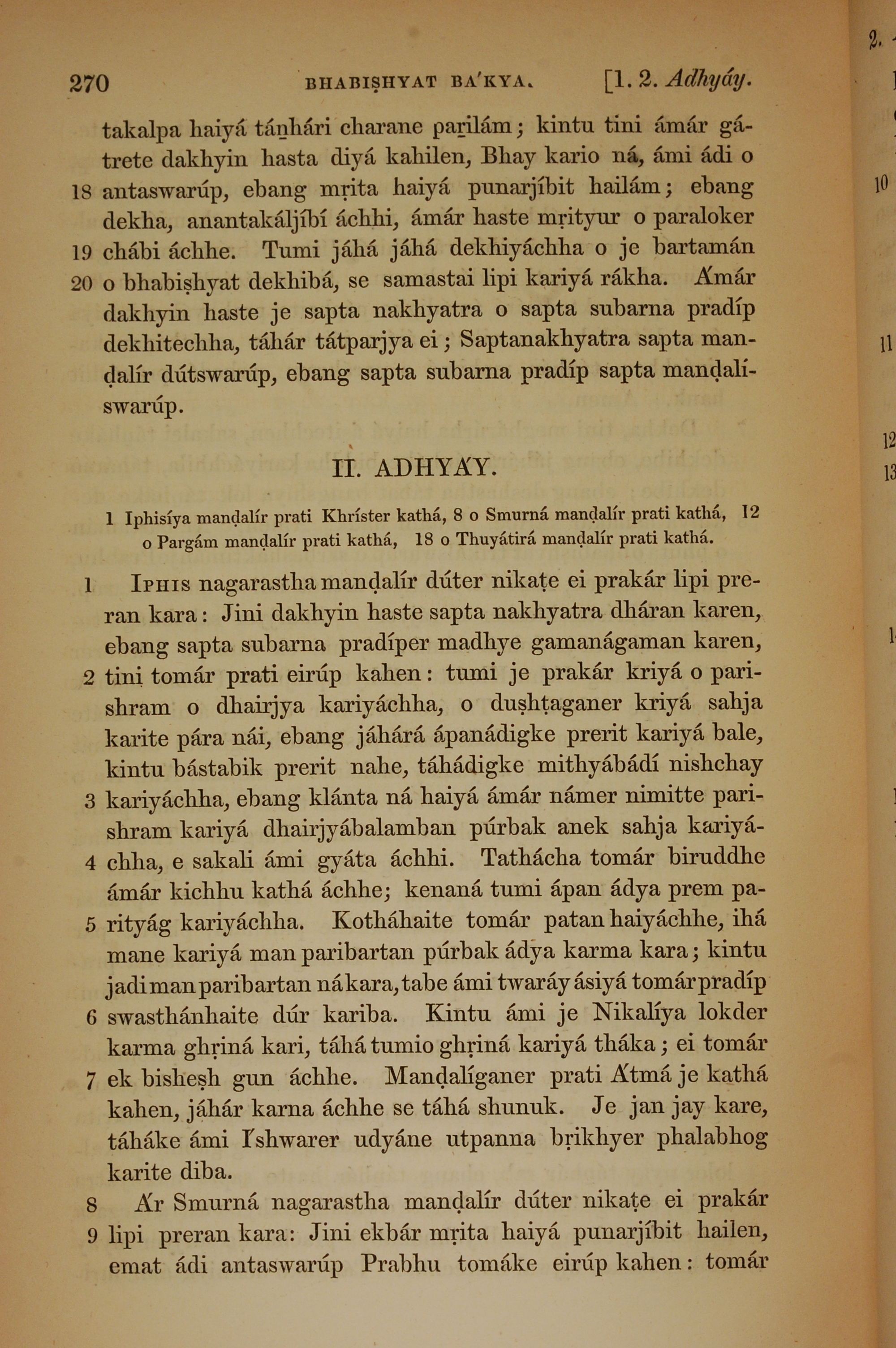 1839年孟加拉語新約全書 啟示錄 1 章 18 節到 2 章 9 節