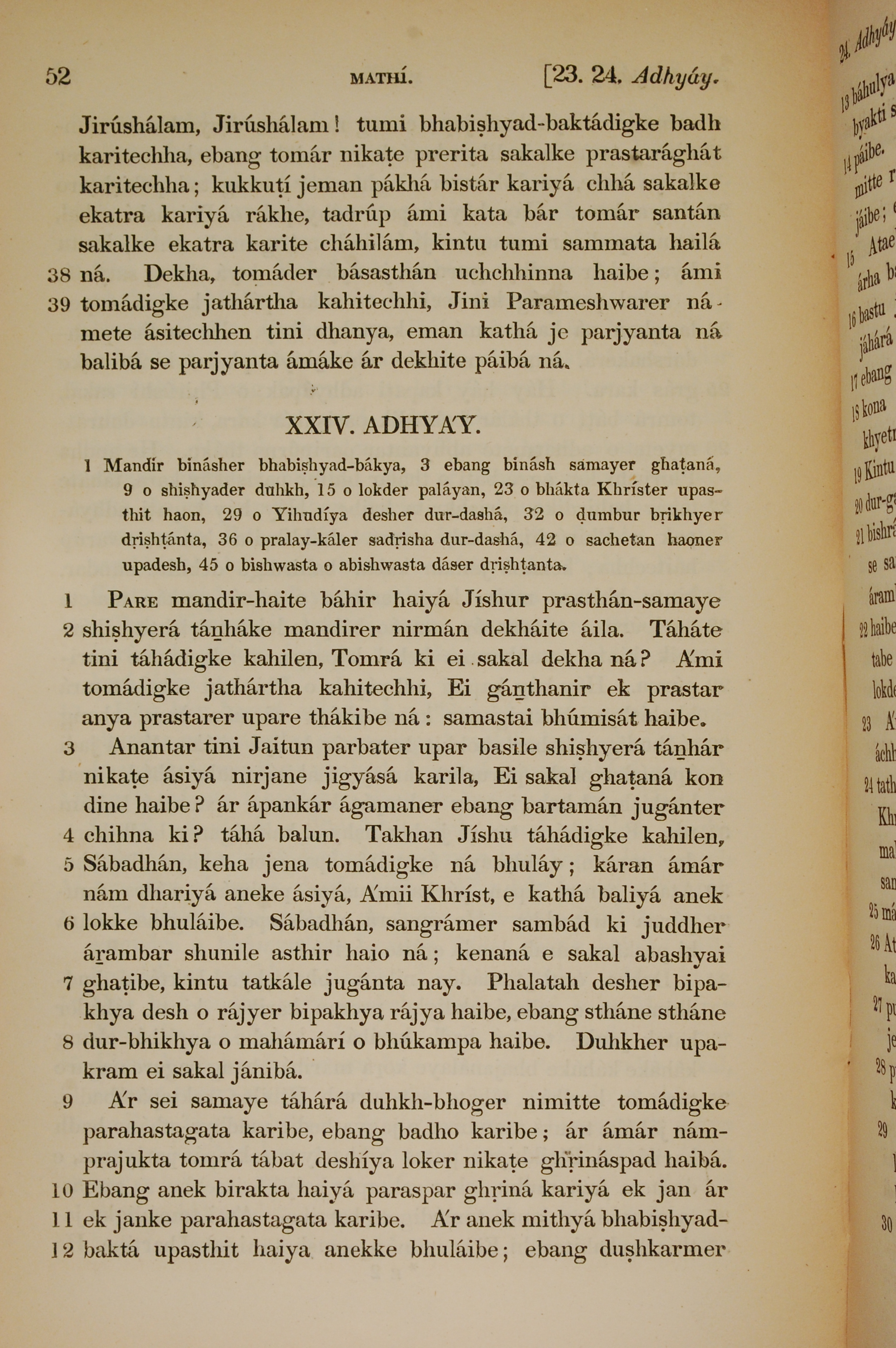 1839年孟加拉語新約全書 馬太福音 23 章 38 節到 24 章 12 節
