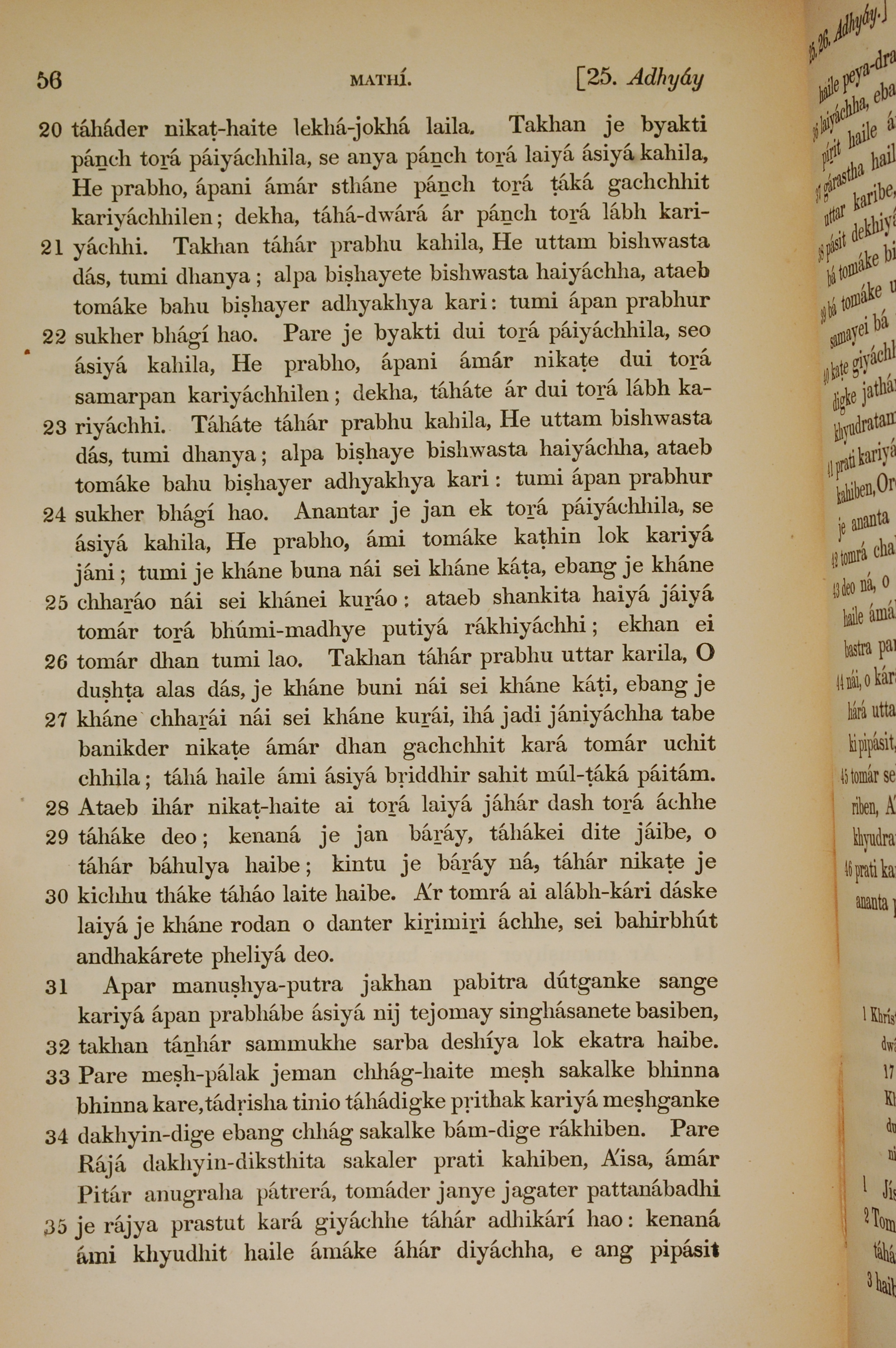 1839年孟加拉語新約全書 馬太福音 25 章 20 節到 25 章 35 節