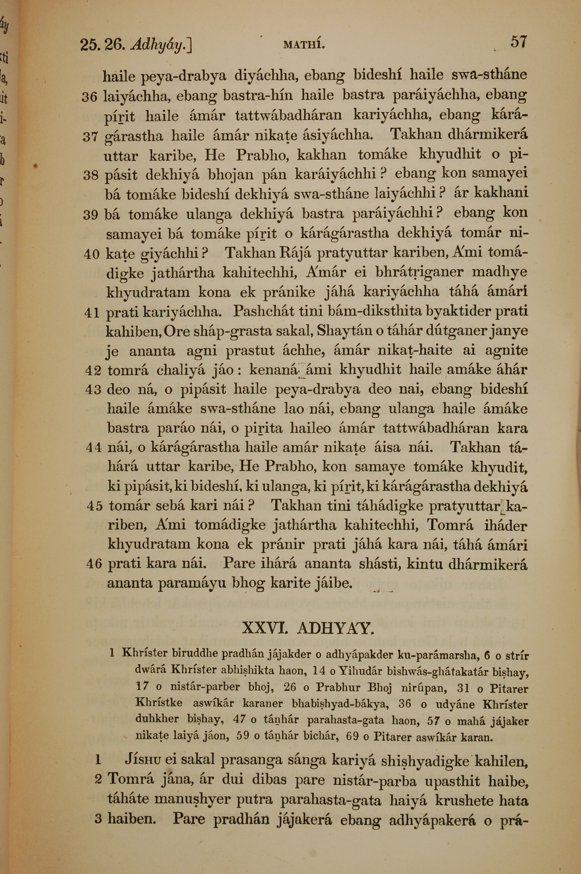1839年孟加拉語新約全書 馬太福音 25 章 36 節到 26 章 3 節