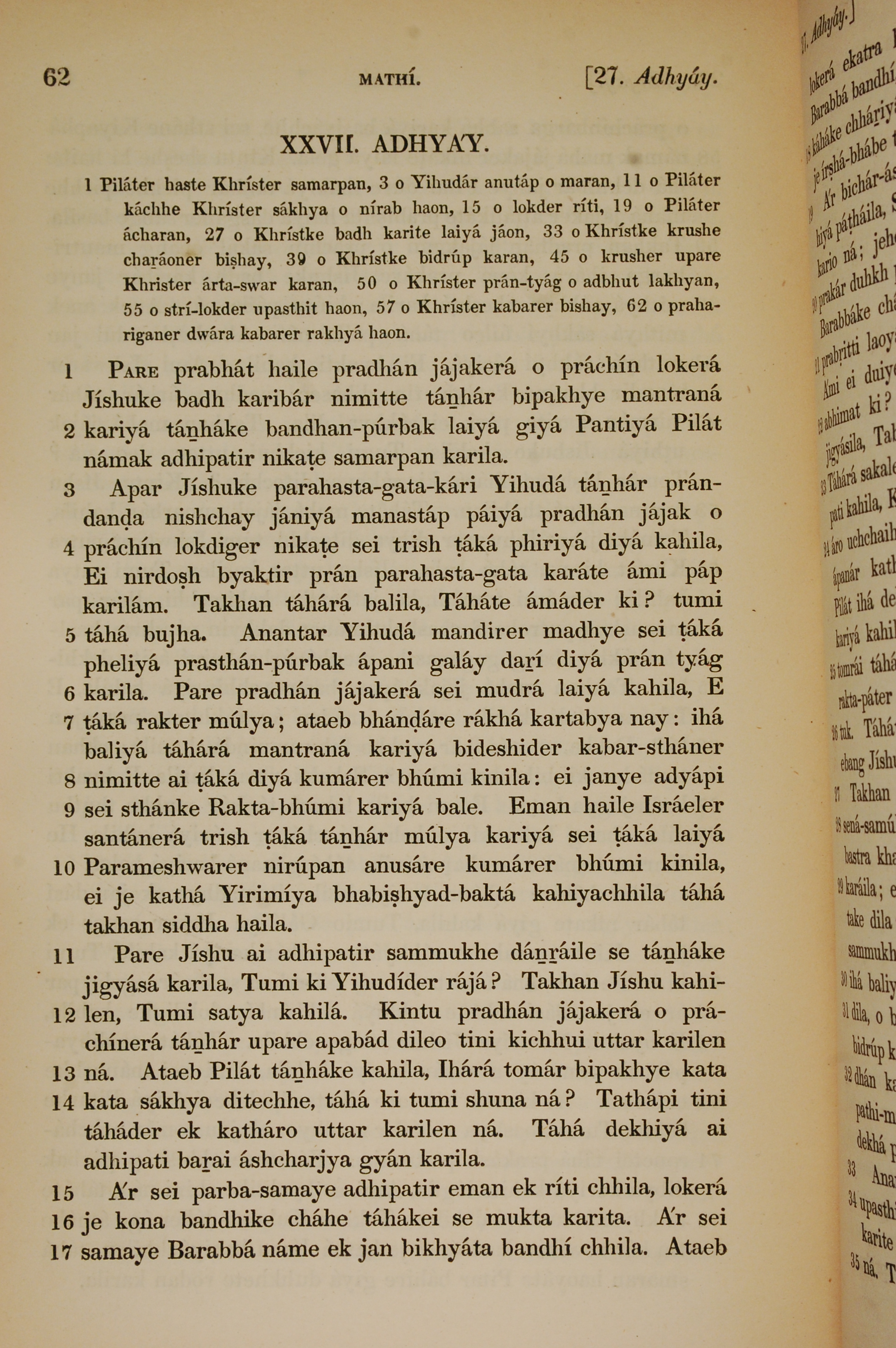 1839年孟加拉語新約全書 馬太福音 27 章 1 節到 27 章 17 節