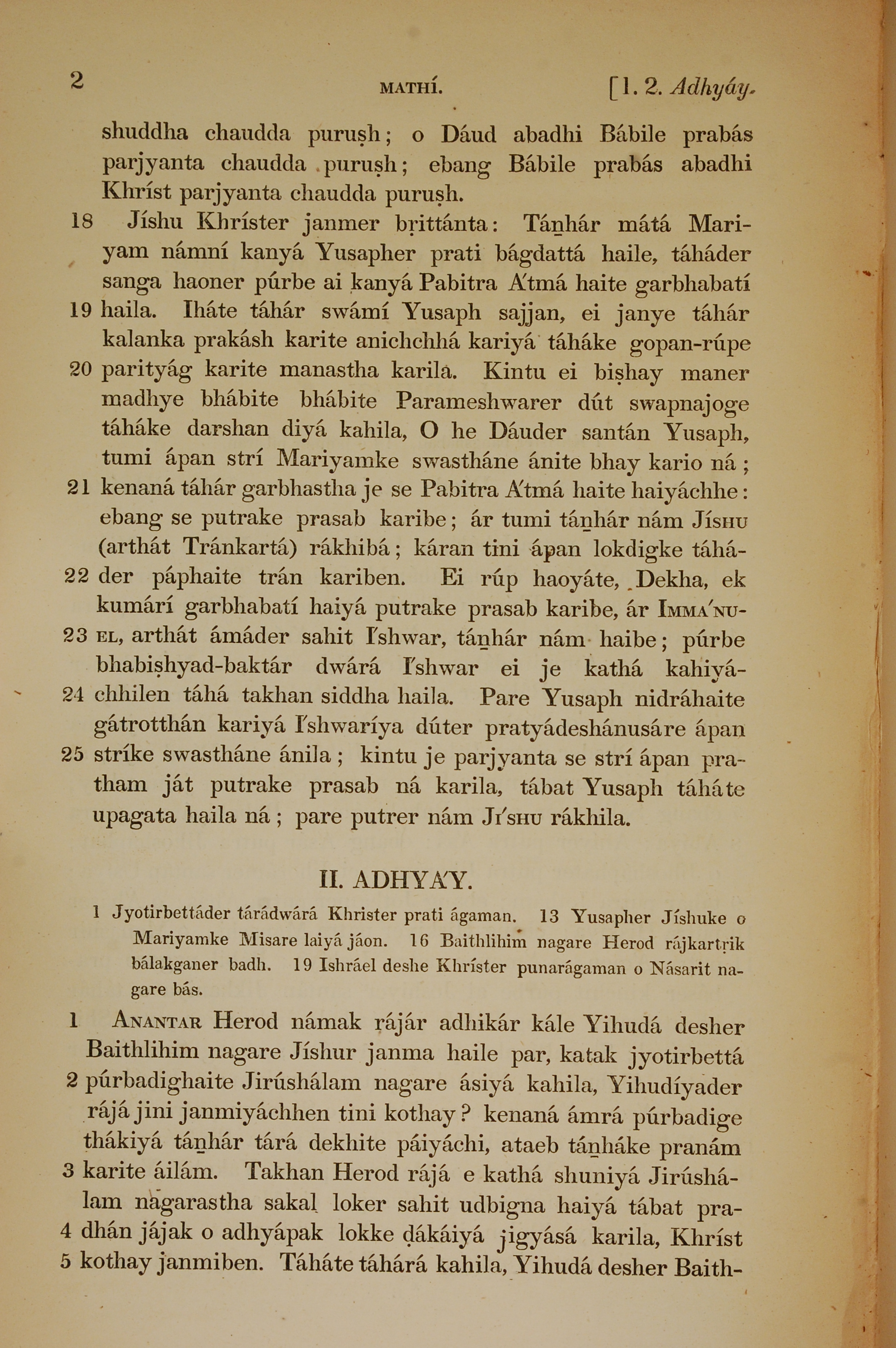 1839年孟加拉語新約全書 馬太福音 1 章 18 節到 2 章 5 節
