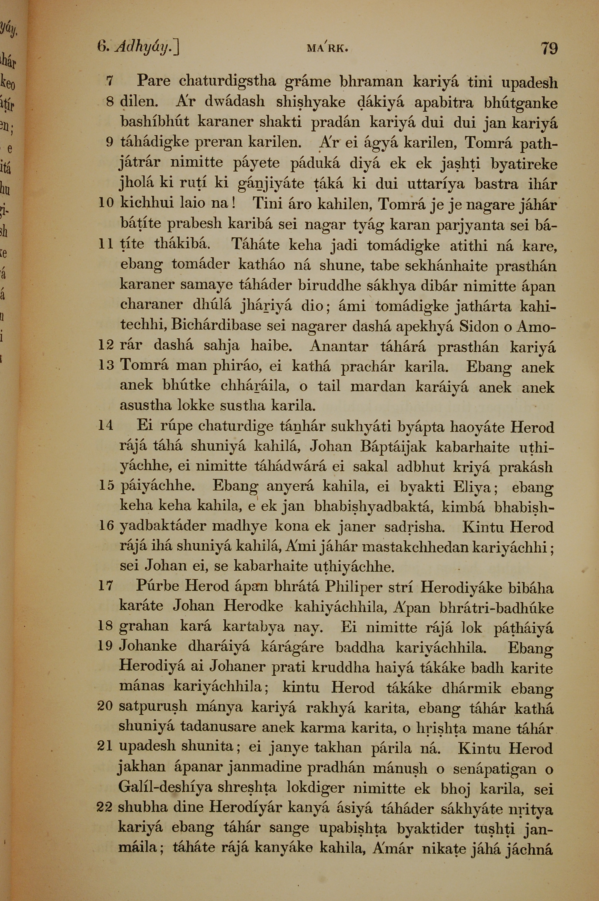 1839年孟加拉語新約全書 馬可福音 6 章 7 節到 6 章 22 節