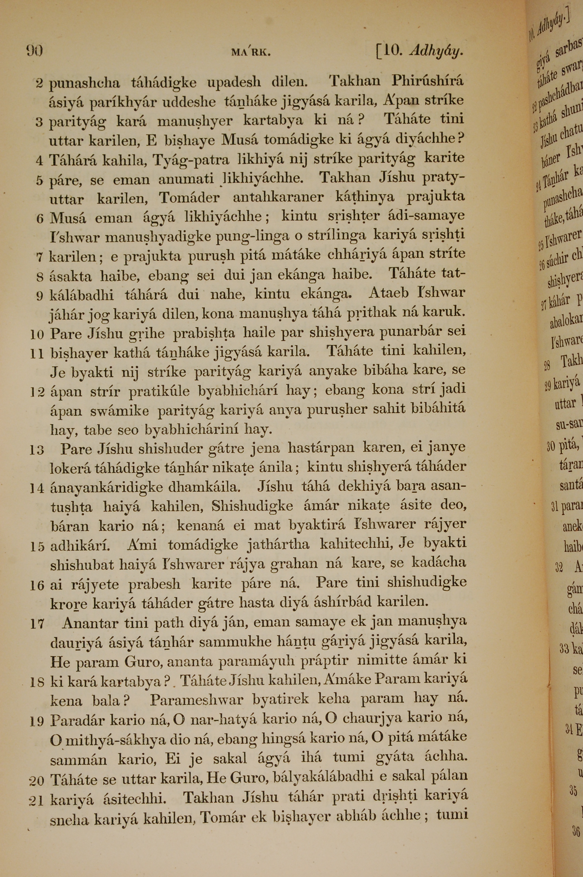 1839年孟加拉語新約全書 馬可福音 10 章 2 節到 10 章 21 節
