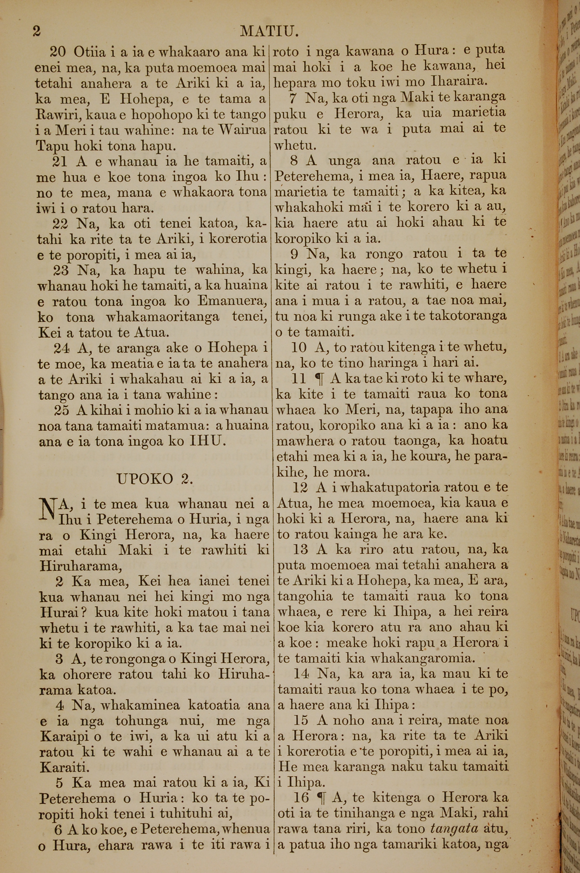 1852年KO TE KAWENATA HOU O TO TATOU ARIKI O TE KAI WHAKAORA O IHU KARAITI 馬太福音 1 章 20 節到 2 章 16 節