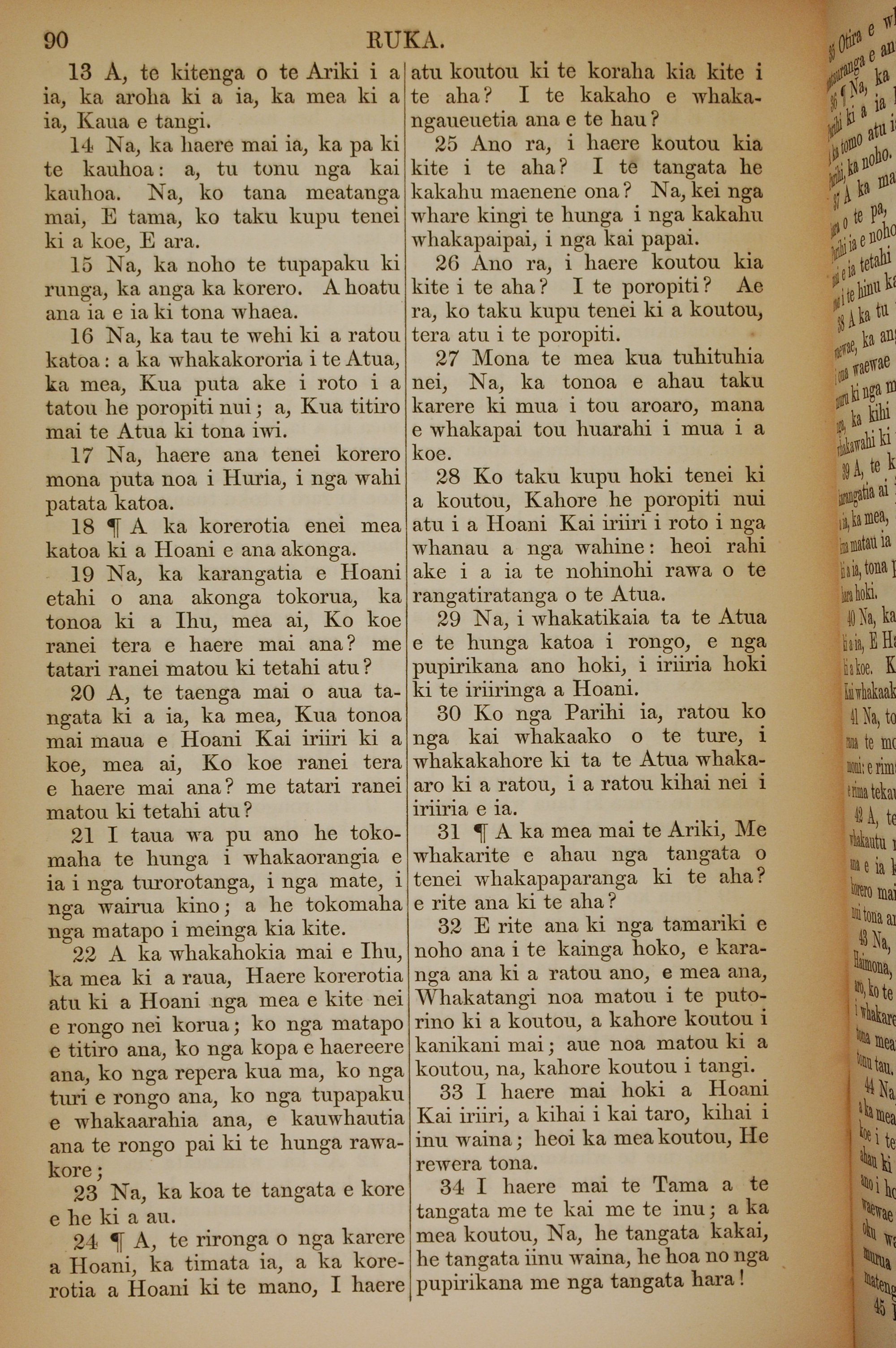 1852年KO TE KAWENATA HOU O TO TATOU ARIKI O TE KAI WHAKAORA O IHU KARAITI 路加福音 7 章 13 節到 7 章 34 節