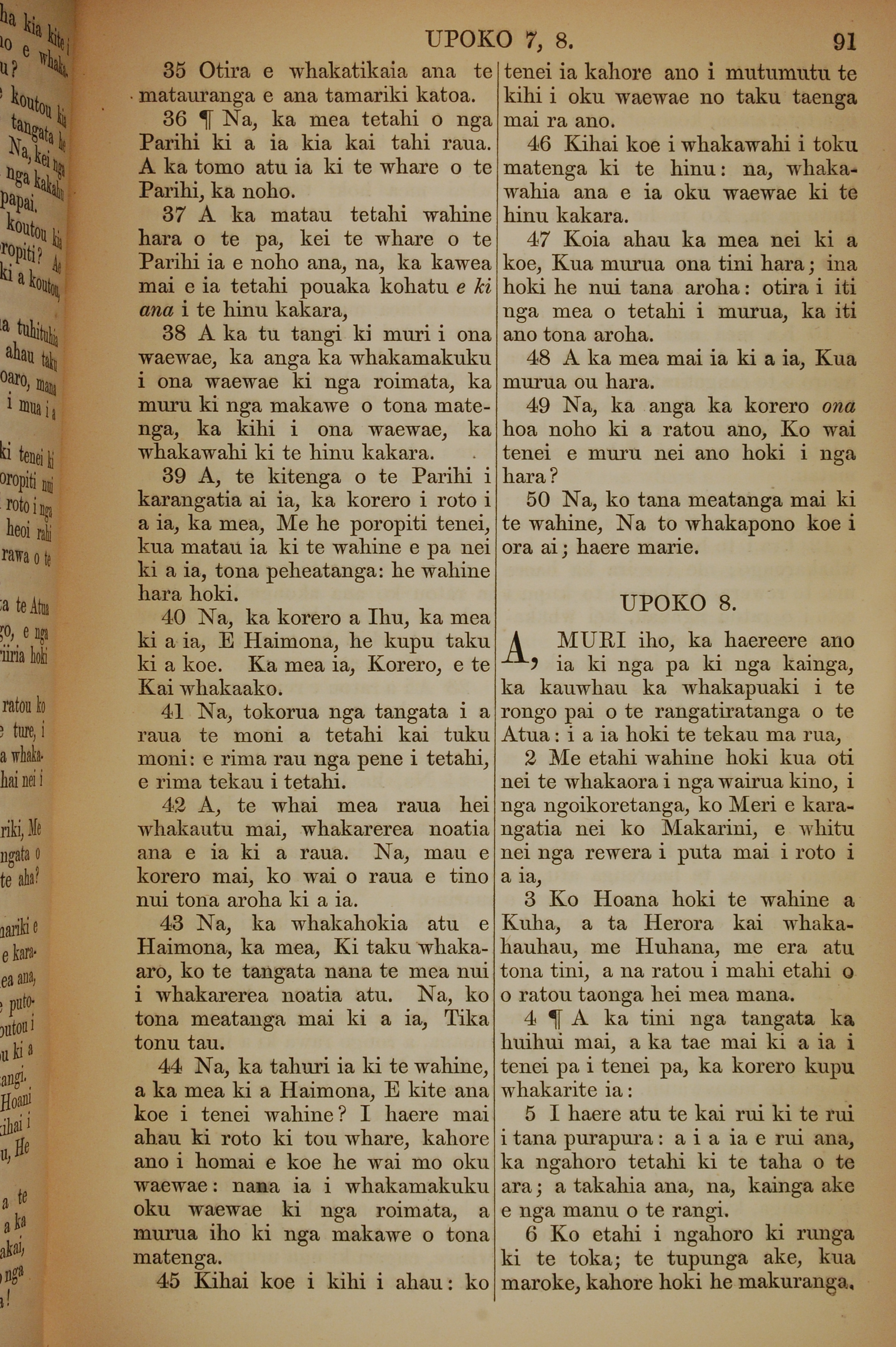 1852年KO TE KAWENATA HOU O TO TATOU ARIKI O TE KAI WHAKAORA O IHU KARAITI 路加福音 7 章 35 節到 8 章 6 節