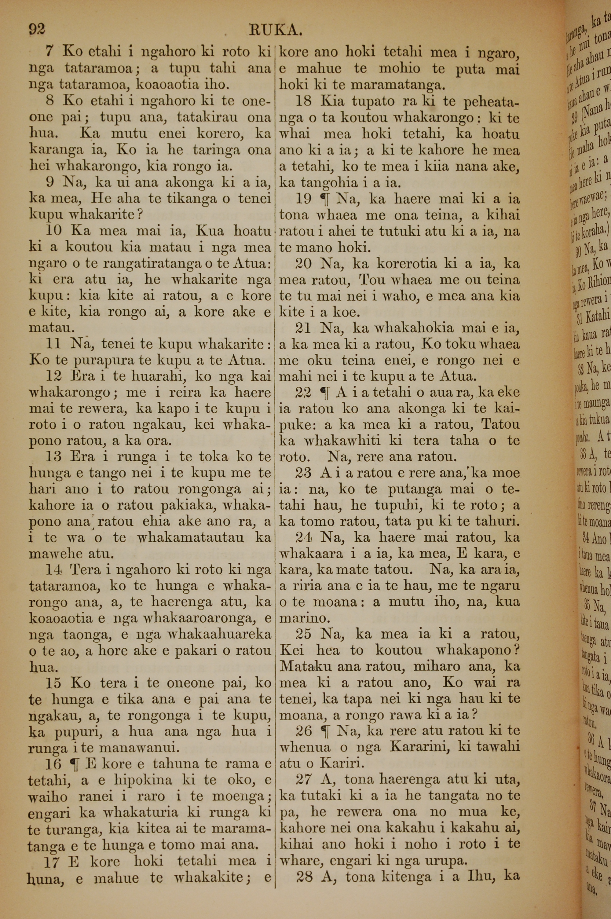 1852年KO TE KAWENATA HOU O TO TATOU ARIKI O TE KAI WHAKAORA O IHU KARAITI 路加福音 8 章 7 節到 8 章 28 節