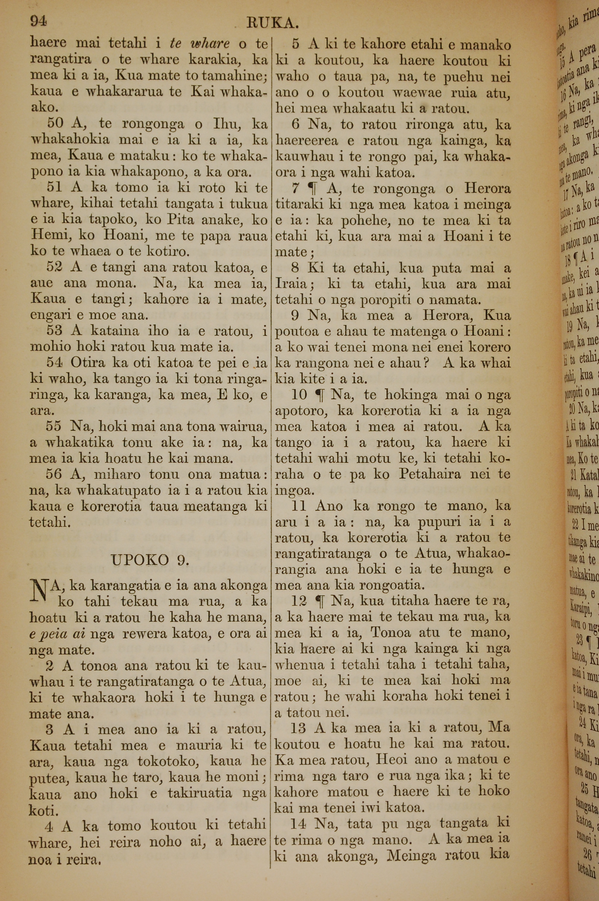 1852年KO TE KAWENATA HOU O TO TATOU ARIKI O TE KAI WHAKAORA O IHU KARAITI 路加福音 8 章 50 節到 9 章 14 節