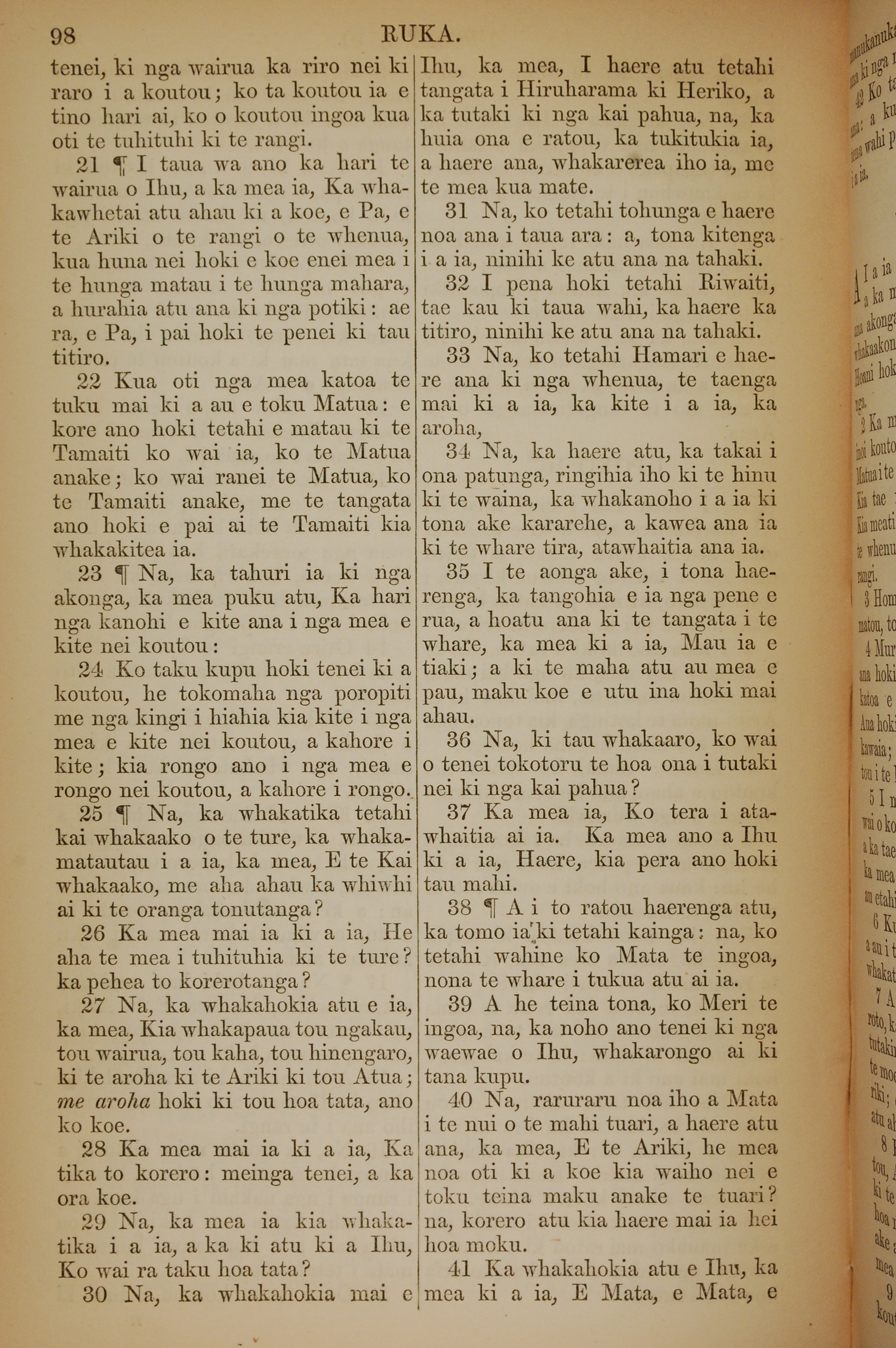 1852年KO TE KAWENATA HOU O TO TATOU ARIKI O TE KAI WHAKAORA O IHU KARAITI 路加福音 10 章 21 節到 10 章 41 節