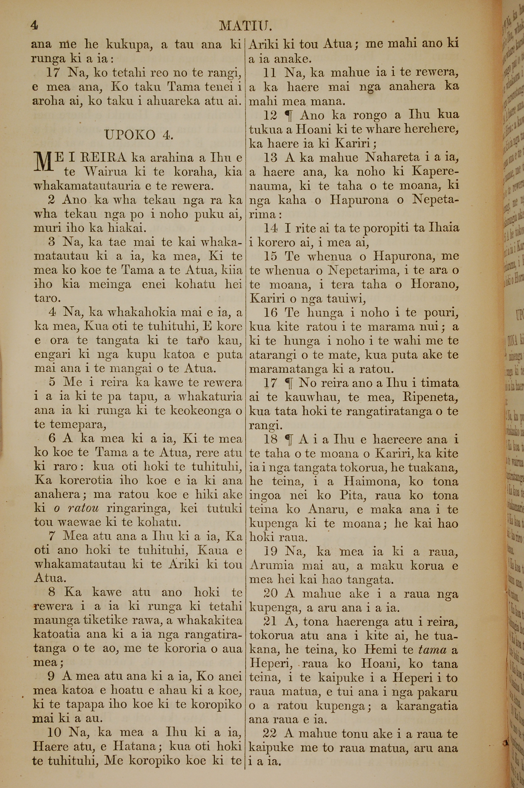 1852年KO TE KAWENATA HOU O TO TATOU ARIKI O TE KAI WHAKAORA O IHU KARAITI 馬太福音 3 章 17 節到 4 章 22 節