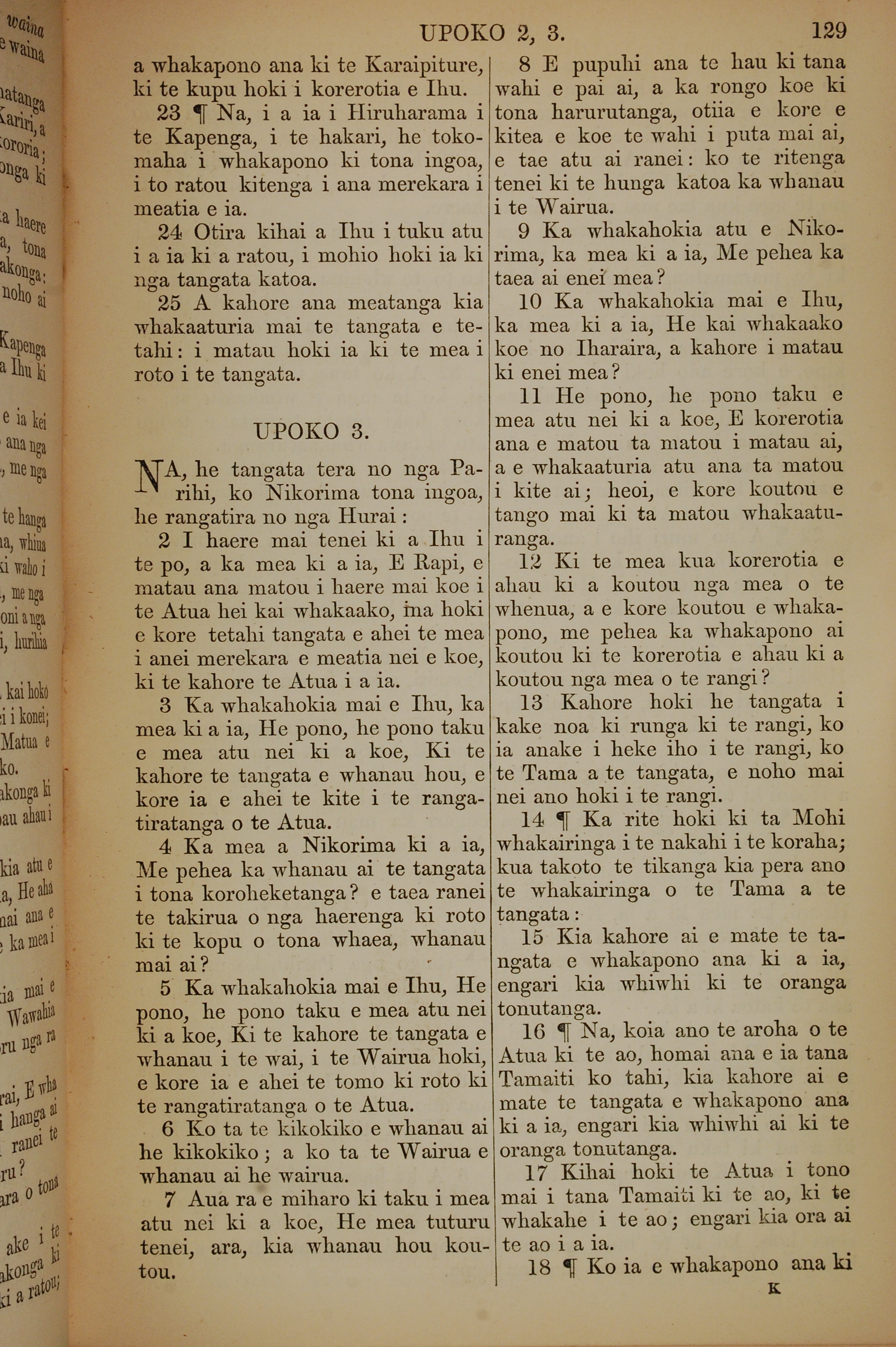 1852年KO TE KAWENATA HOU O TO TATOU ARIKI O TE KAI WHAKAORA O IHU KARAITI 約翰福音 2 章 23 節到 3 章 18 節
