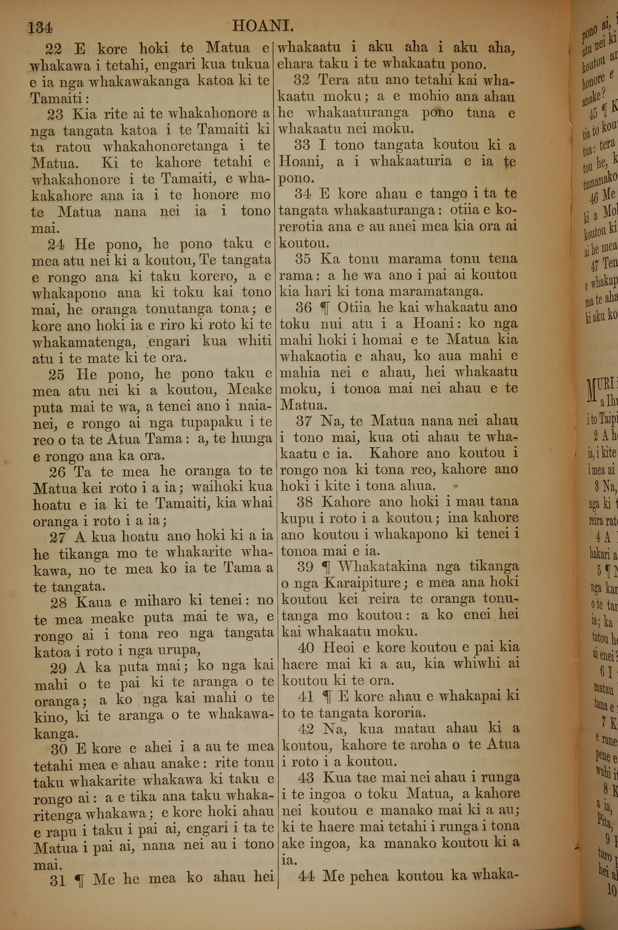 1852年KO TE KAWENATA HOU O TO TATOU ARIKI O TE KAI WHAKAORA O IHU KARAITI 約翰福音 5 章 22 節到 5 章 44 節