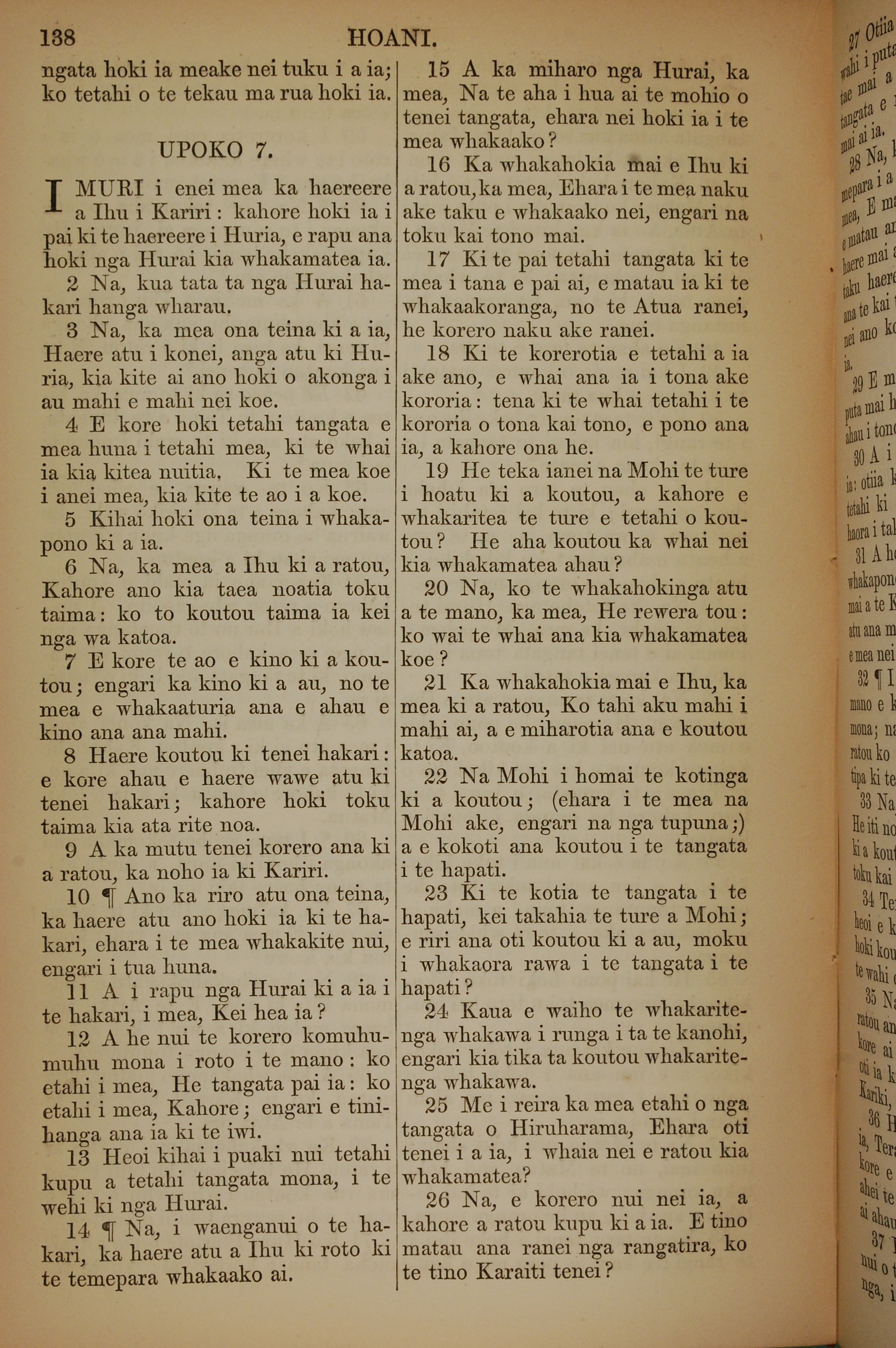 1852年KO TE KAWENATA HOU O TO TATOU ARIKI O TE KAI WHAKAORA O IHU KARAITI 約翰福音 7 章 1 節到 7 章 26 節