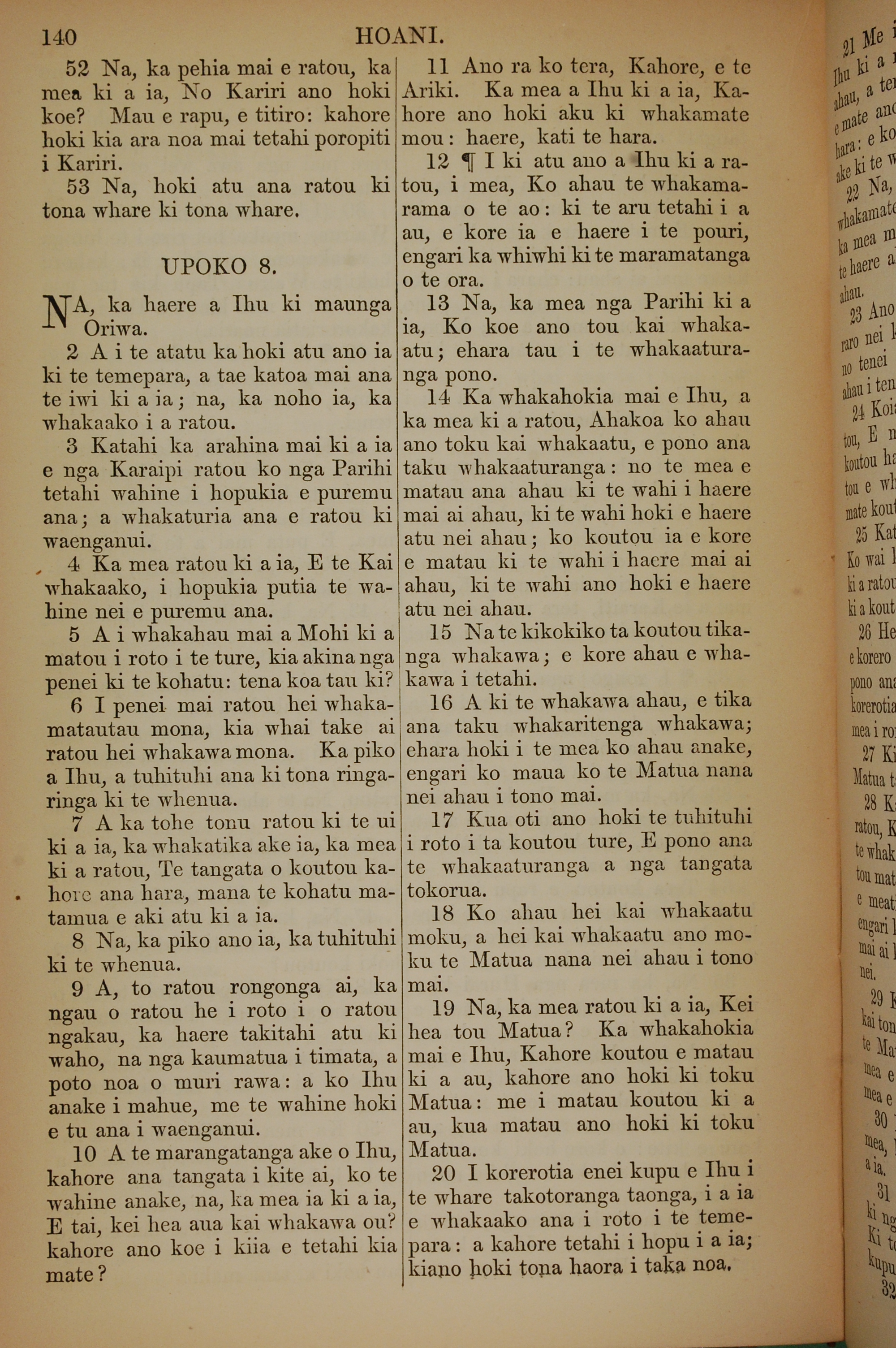 1852年KO TE KAWENATA HOU O TO TATOU ARIKI O TE KAI WHAKAORA O IHU KARAITI 約翰福音 7 章 52 節到 8 章 20 節