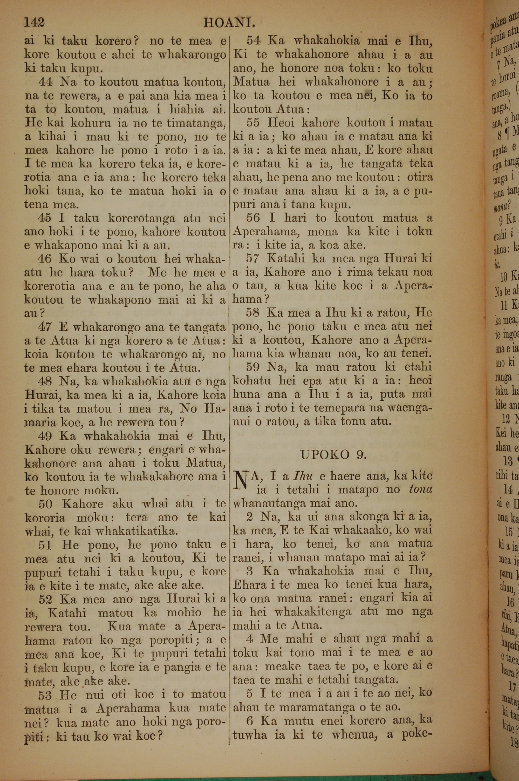 1852年KO TE KAWENATA HOU O TO TATOU ARIKI O TE KAI WHAKAORA O IHU KARAITI 約翰福音 8 章 44 節到 9 章 6 節