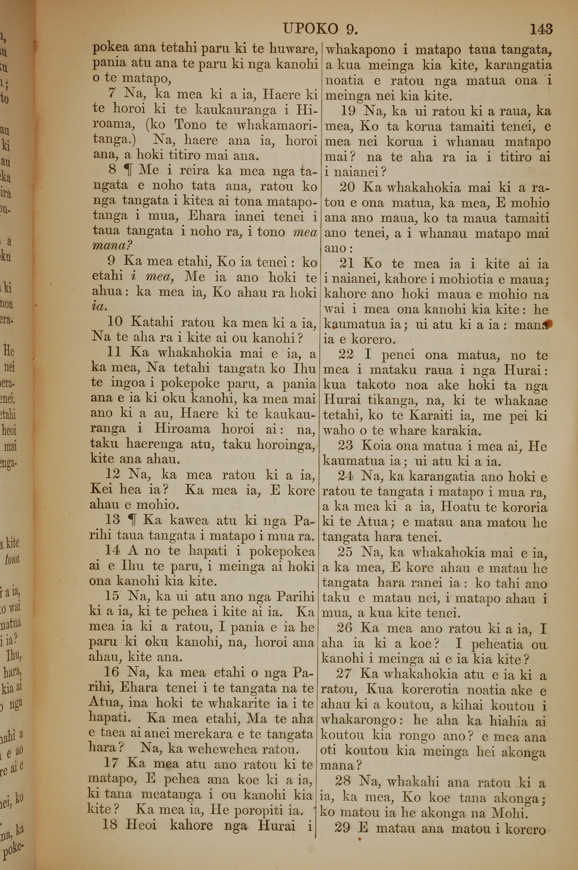 1852年KO TE KAWENATA HOU O TO TATOU ARIKI O TE KAI WHAKAORA O IHU KARAITI 約翰福音 9 章 7 節到 9 章 29 節