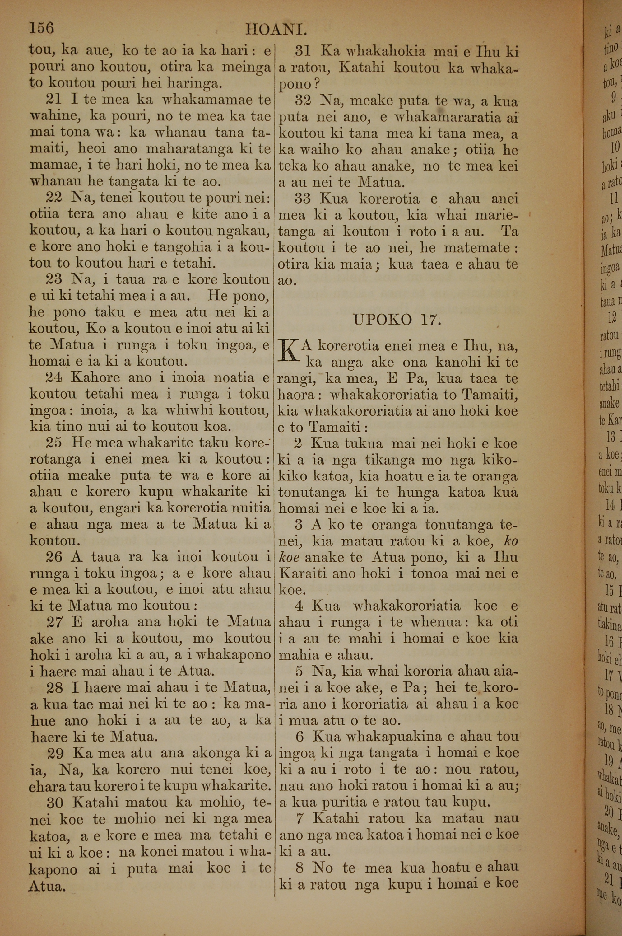 1852年KO TE KAWENATA HOU O TO TATOU ARIKI O TE KAI WHAKAORA O IHU KARAITI 約翰福音 16 章 21 節到 17 章 8 節