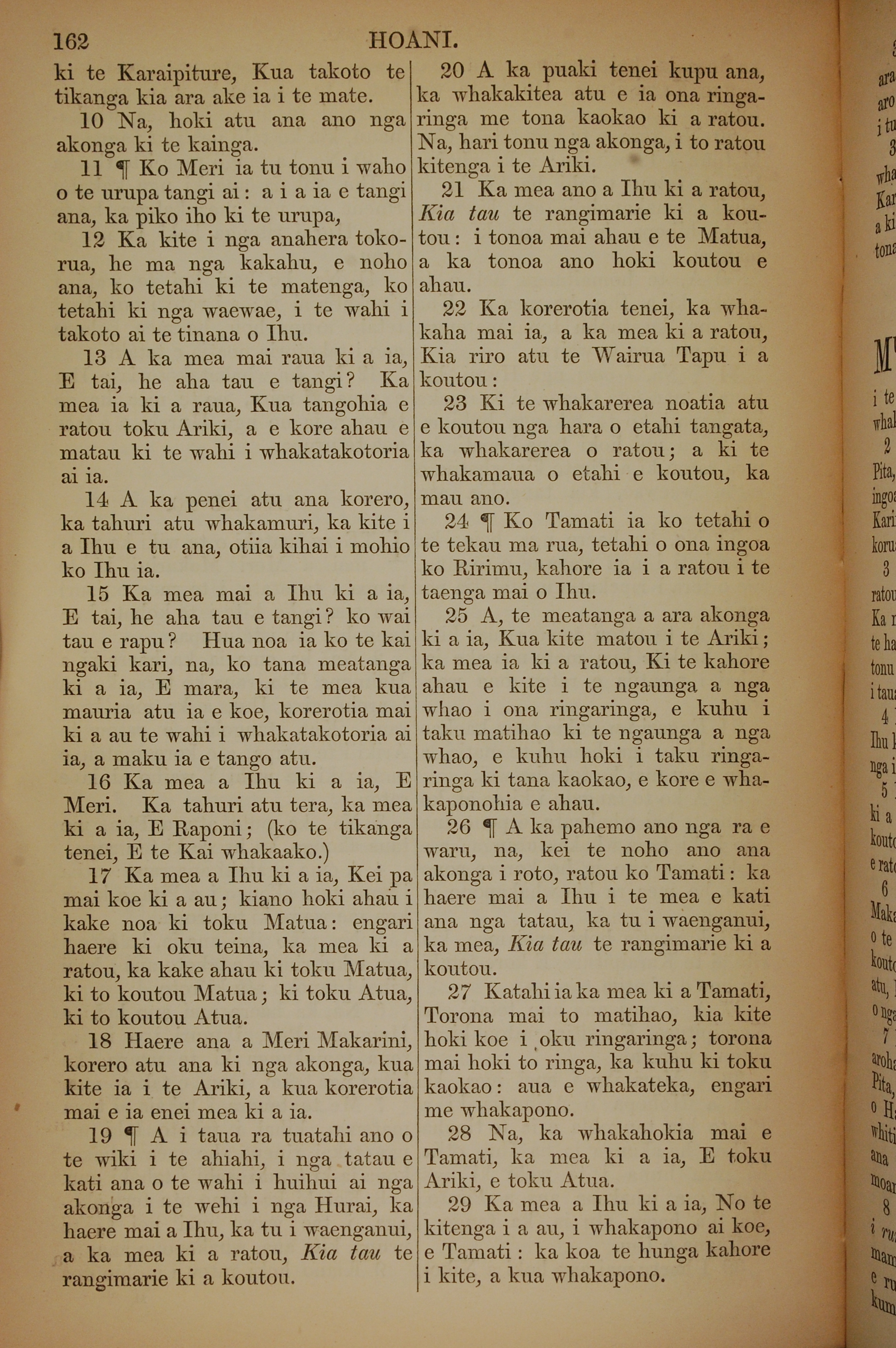 1852年KO TE KAWENATA HOU O TO TATOU ARIKI O TE KAI WHAKAORA O IHU KARAITI 約翰福音 20 章 10 節到 20 章 29 節