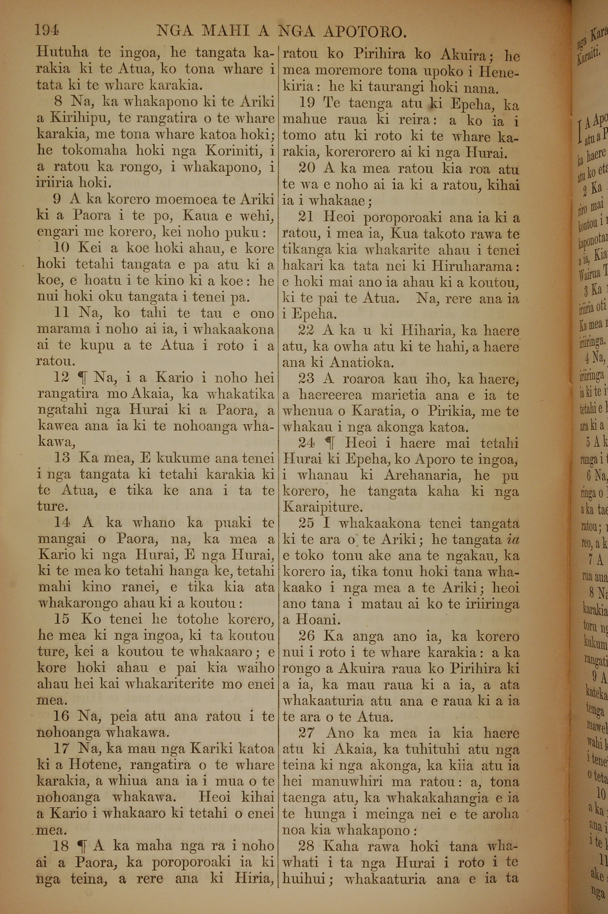 1852年KO TE KAWENATA HOU O TO TATOU ARIKI O TE KAI WHAKAORA O IHU KARAITI 使徒行傳 18 章 8 節到 18 章 28 節