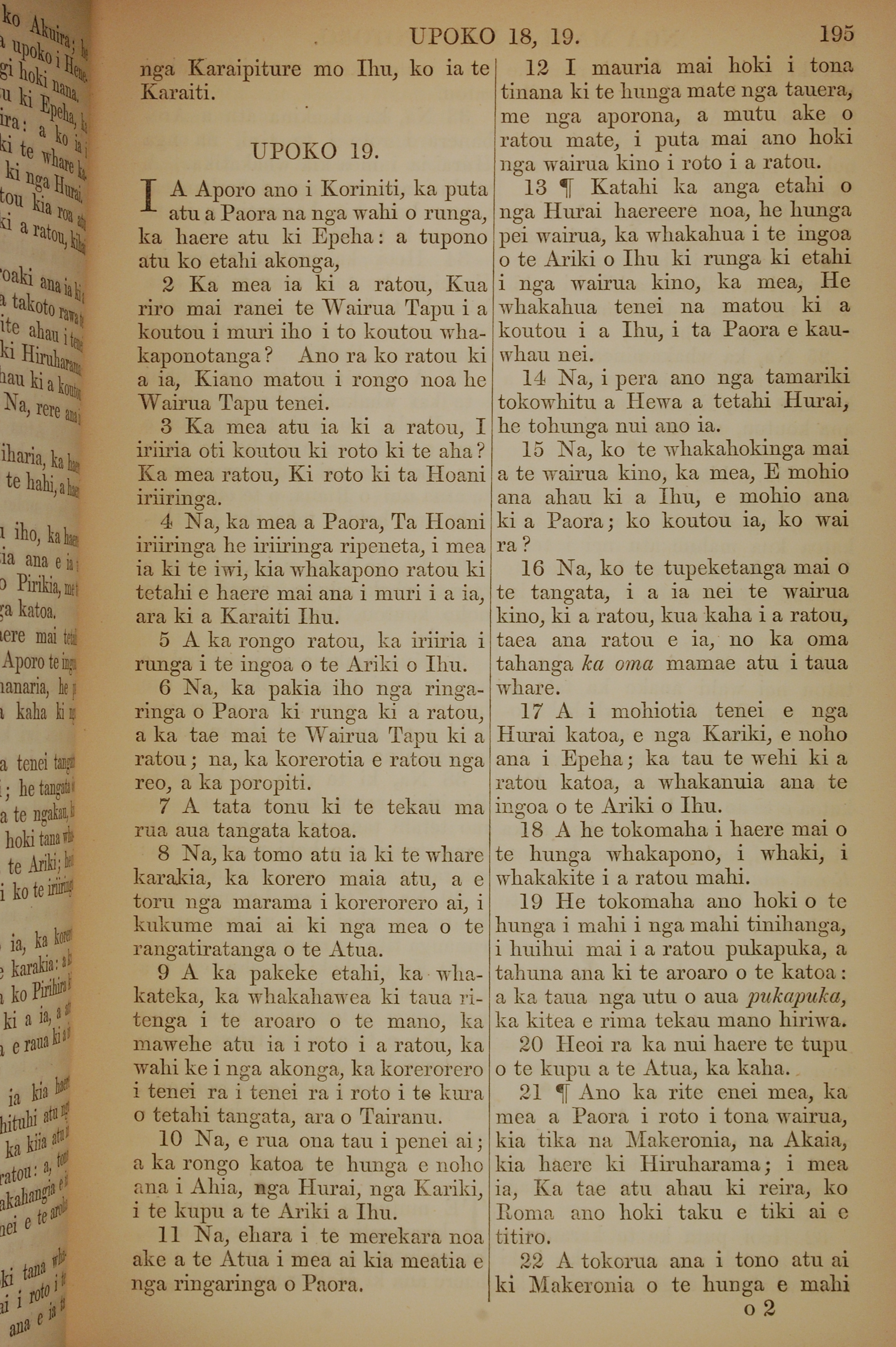 1852年KO TE KAWENATA HOU O TO TATOU ARIKI O TE KAI WHAKAORA O IHU KARAITI 使徒行傳 19 章 1 節到 19 章 22 節