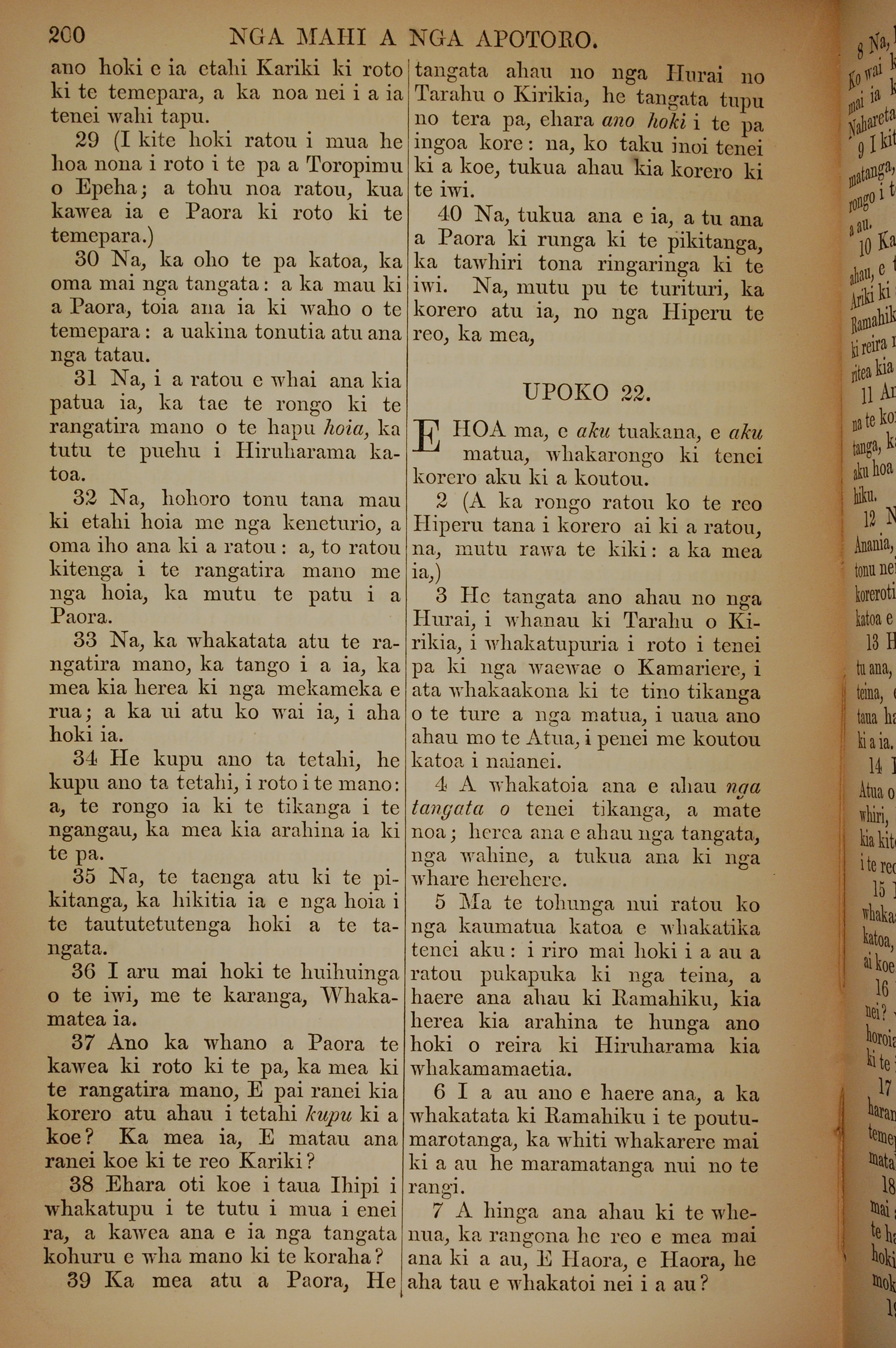 1852年KO TE KAWENATA HOU O TO TATOU ARIKI O TE KAI WHAKAORA O IHU KARAITI 使徒行傳 21 章 29 節到 22 章 7 節