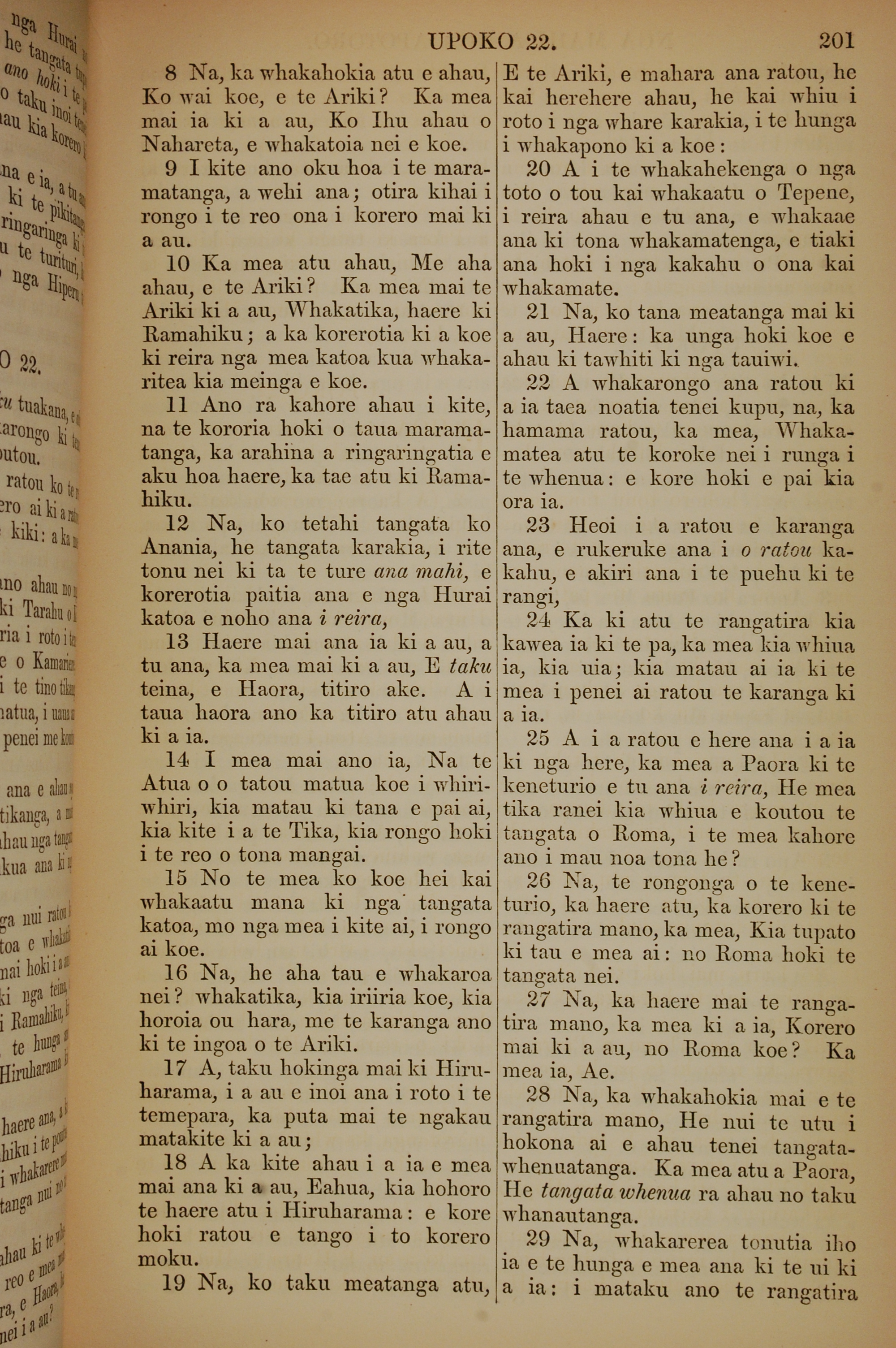 1852年KO TE KAWENATA HOU O TO TATOU ARIKI O TE KAI WHAKAORA O IHU KARAITI 使徒行傳 22 章 8 節到 22 章 29 節