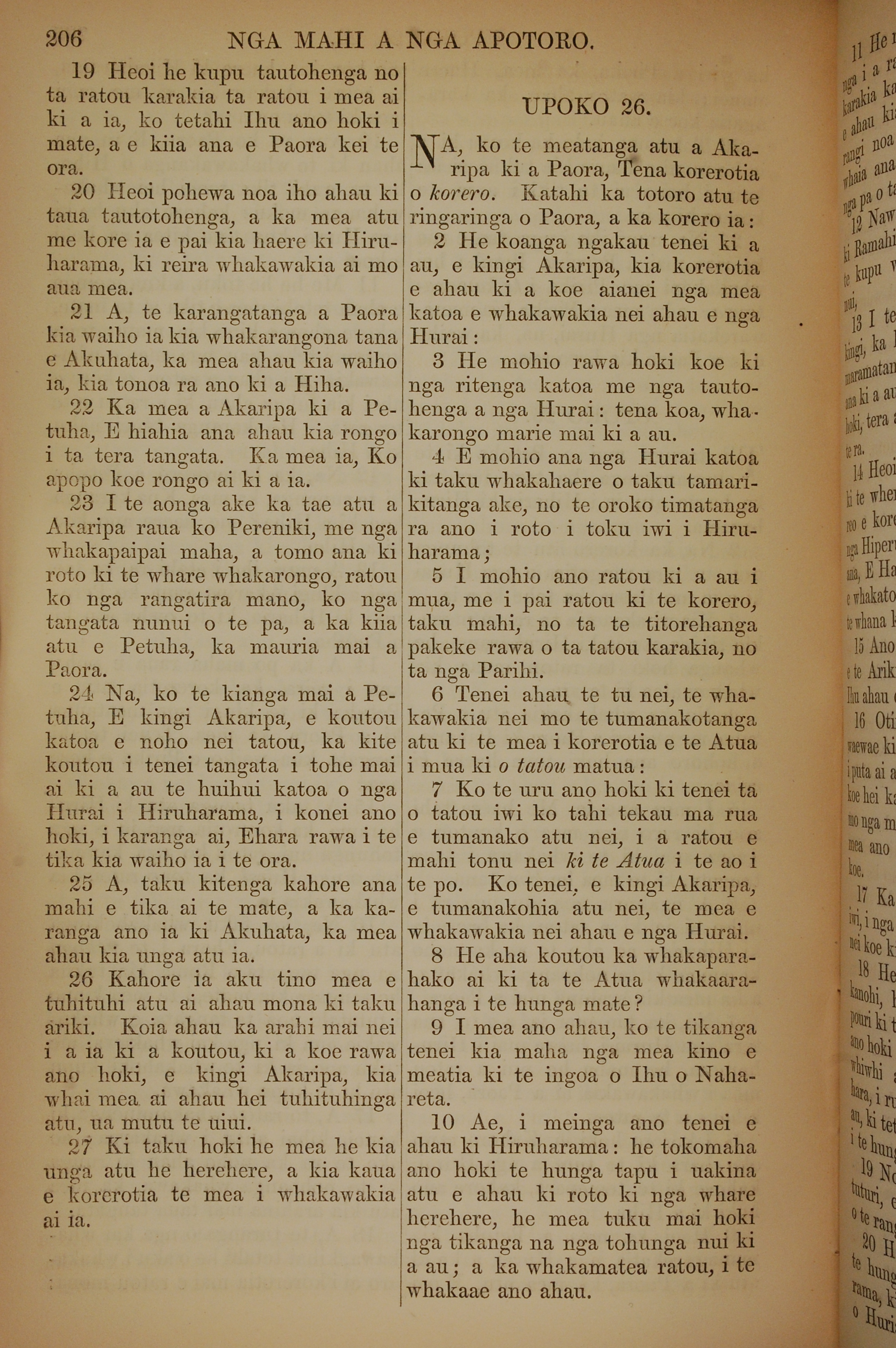 1852年KO TE KAWENATA HOU O TO TATOU ARIKI O TE KAI WHAKAORA O IHU KARAITI 使徒行傳 25 章 19 節到 26 章 10 節