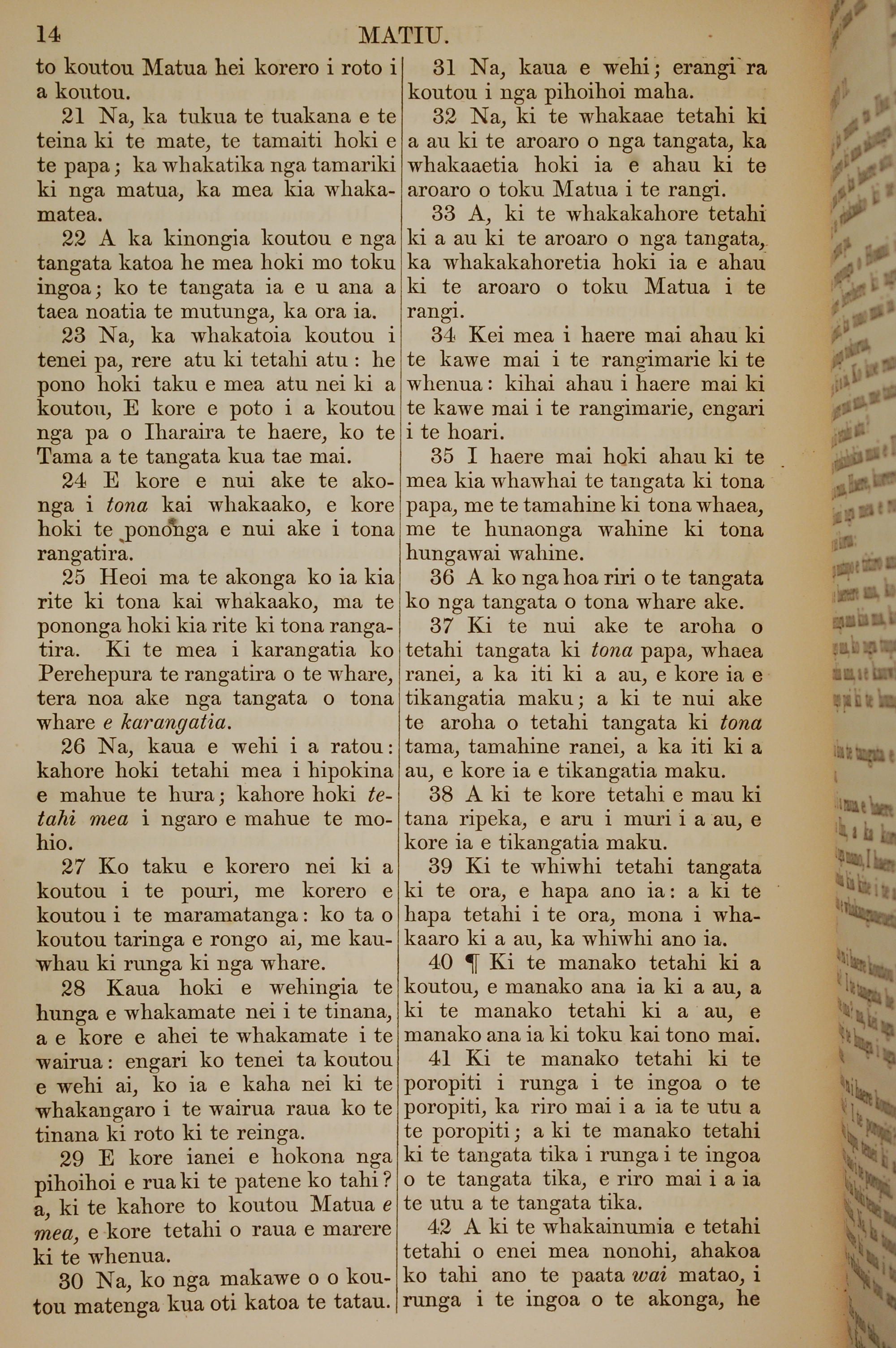 1852年KO TE KAWENATA HOU O TO TATOU ARIKI O TE KAI WHAKAORA O IHU KARAITI 馬太福音 10 章 21 節到 10 章 42 節