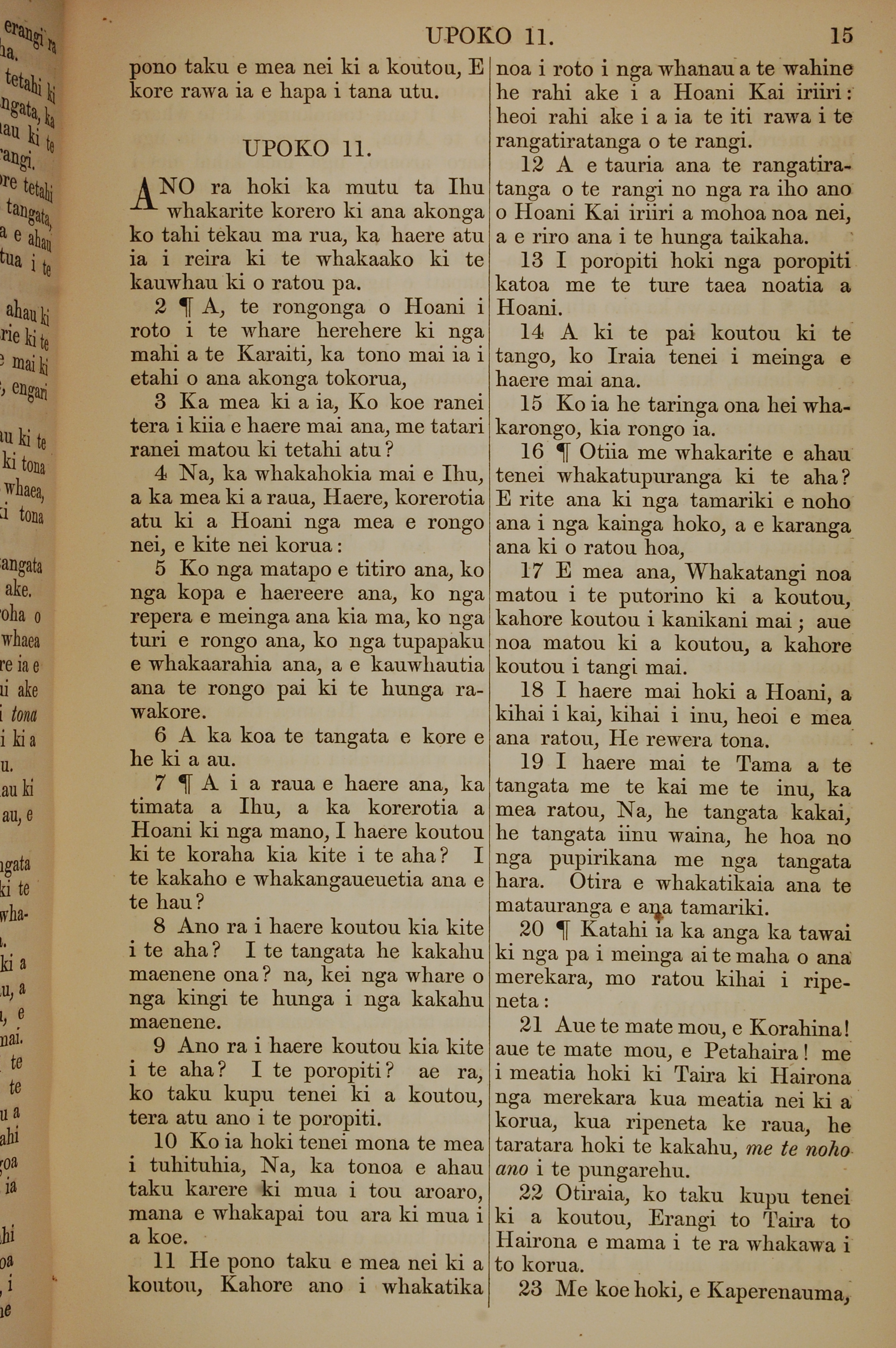 1852年KO TE KAWENATA HOU O TO TATOU ARIKI O TE KAI WHAKAORA O IHU KARAITI 馬太福音 11 章 1 節到 11 章 23 節